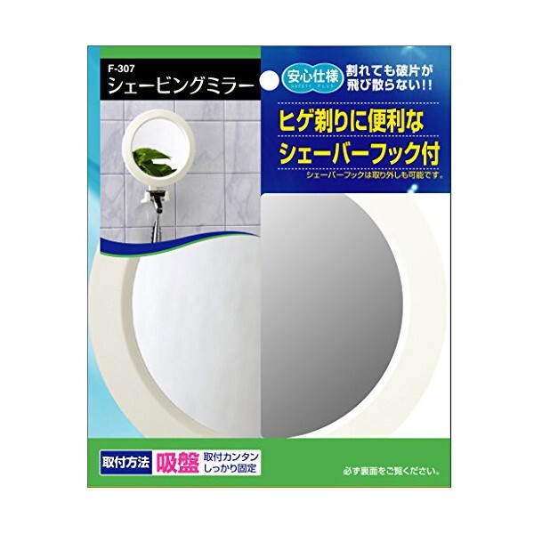 鏡 吸盤 取り付け 角度調整 調節 円形 丸型 ウォールミラー シェーバーフック付き 顔そり 顔剃り かみそり 剃刀 シェービング