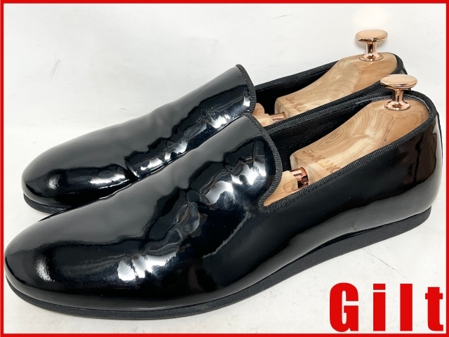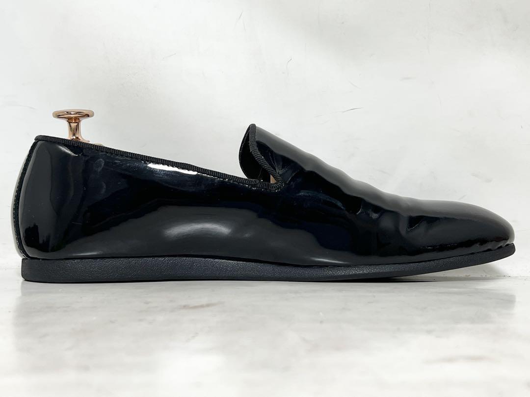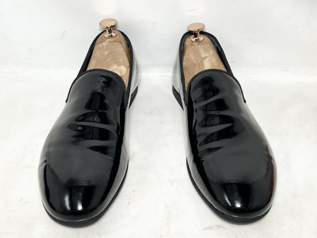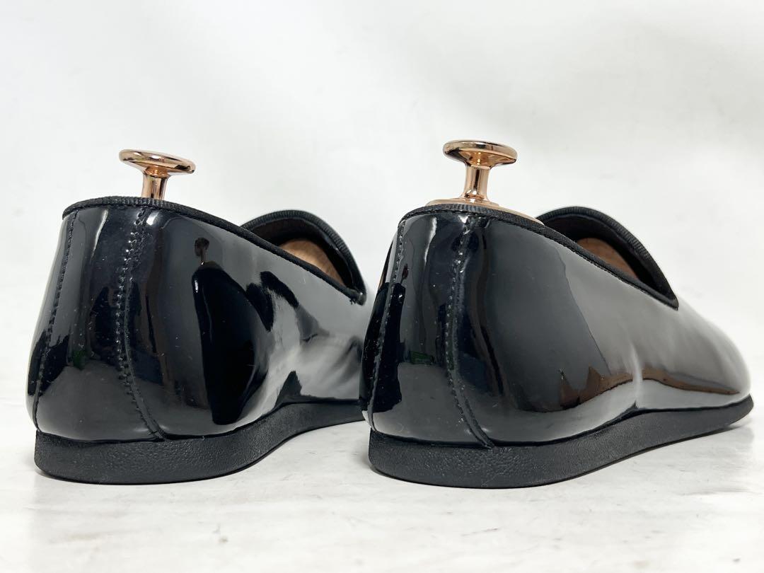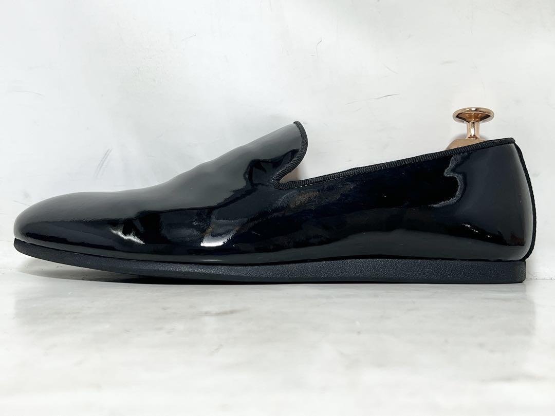 即決★ポルトガル製 BEAMS★40=約25cm エナメルレザースリッポン ビームス 黒 ブラック シューズ ドレス ローファー 本革 革靴