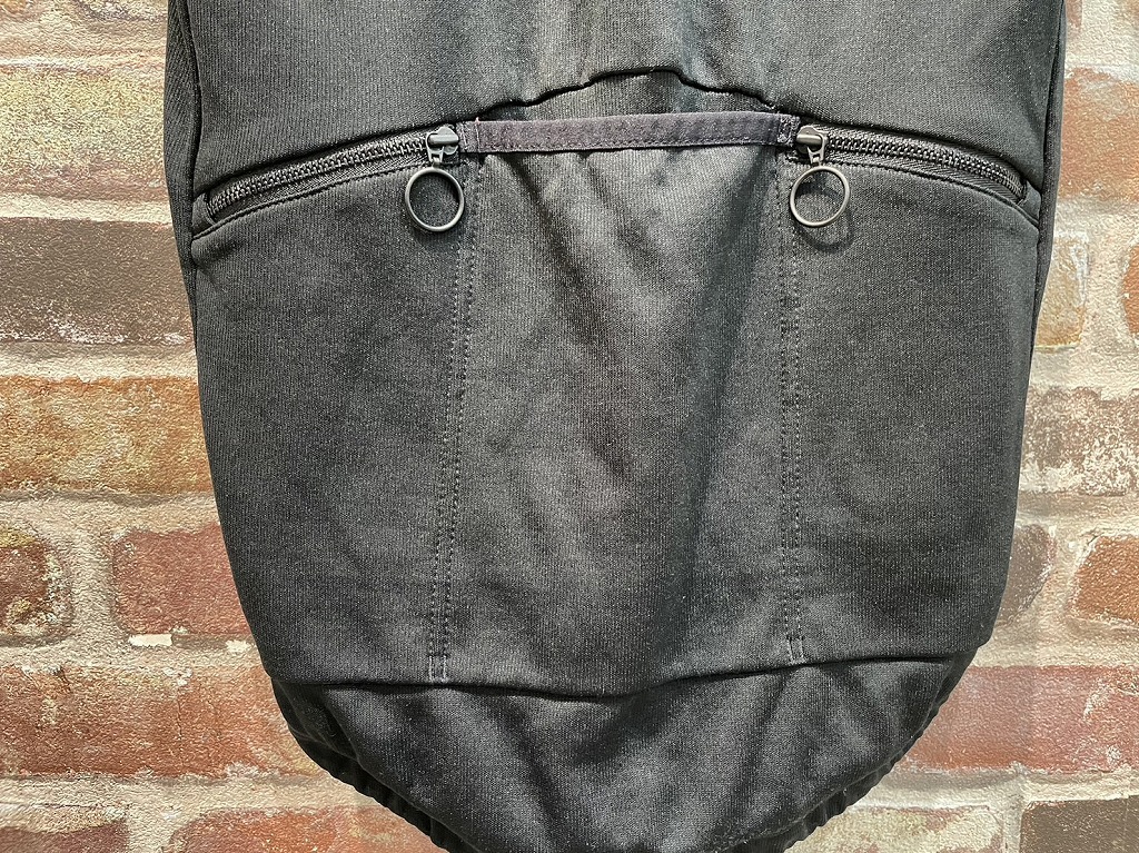 フルオープンタイプで、大きめに設計されたリアポケットには貴重品を収納するのに便利なジッパー付きポケットが2つあります。