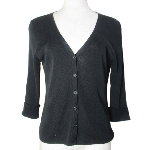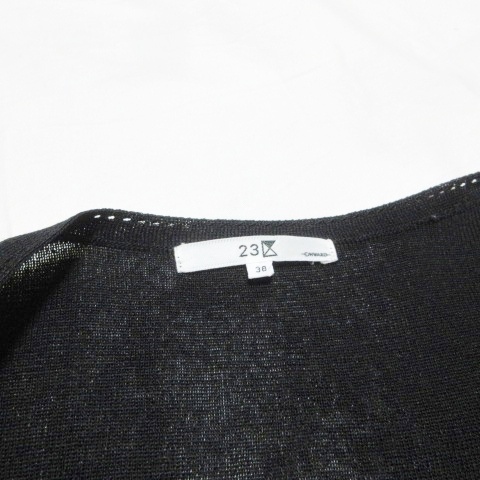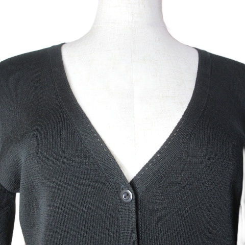 23区 オンワード樫山 ニット カーディガン 薄手 7分袖 Vネック 無地 黒 ブラック 38 M相当 X レディース