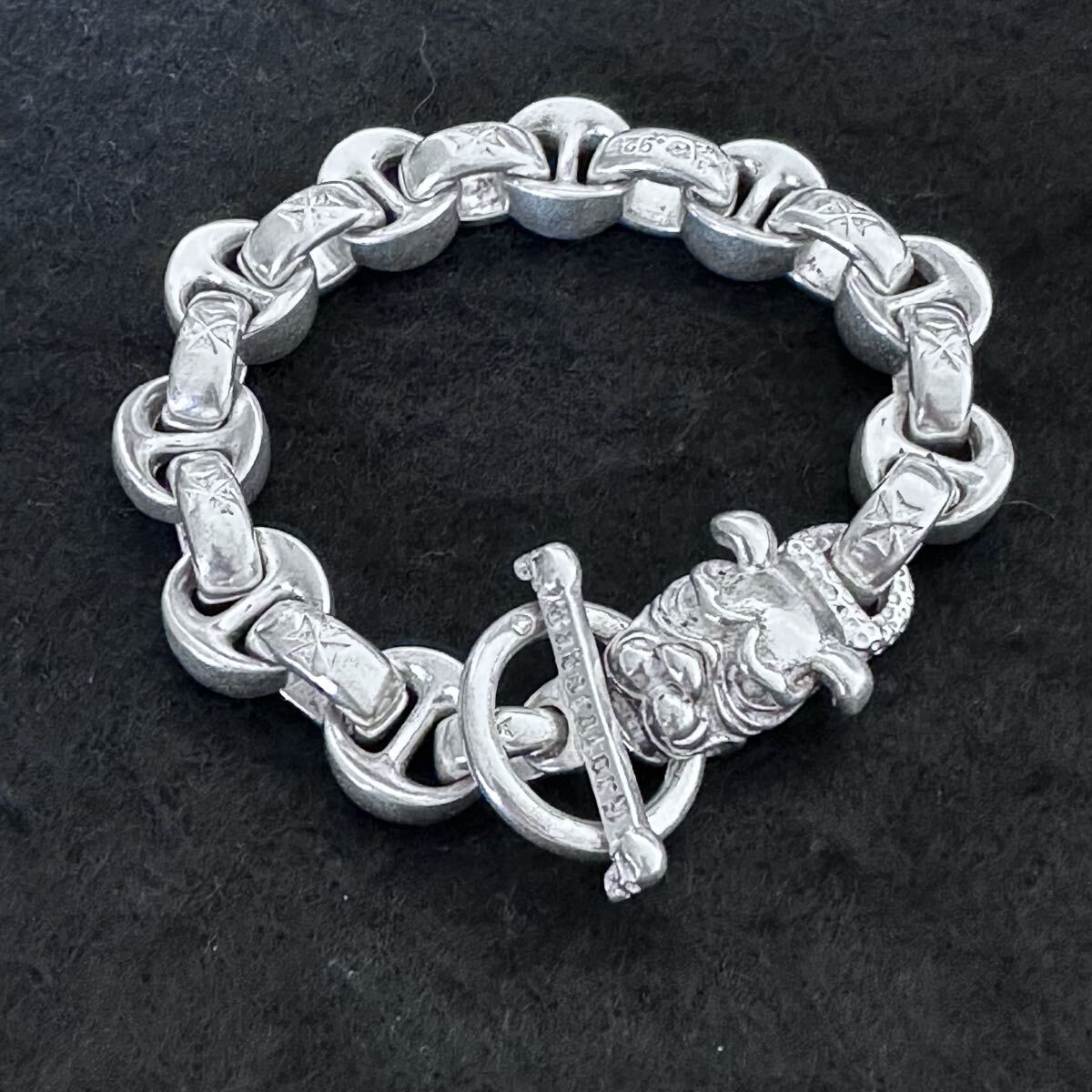 シルバー925製のドッグブレスレットは、ガボールやビルウォールレザーなど芸能人にも人気のデザインです。重厚感としっかりした作りが特徴で、迫力と可愛らしさを兼ね備えています