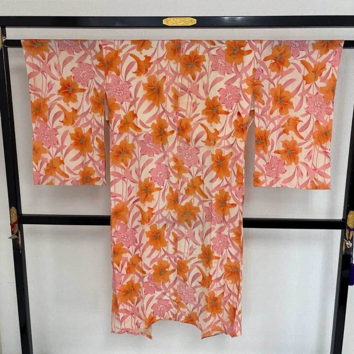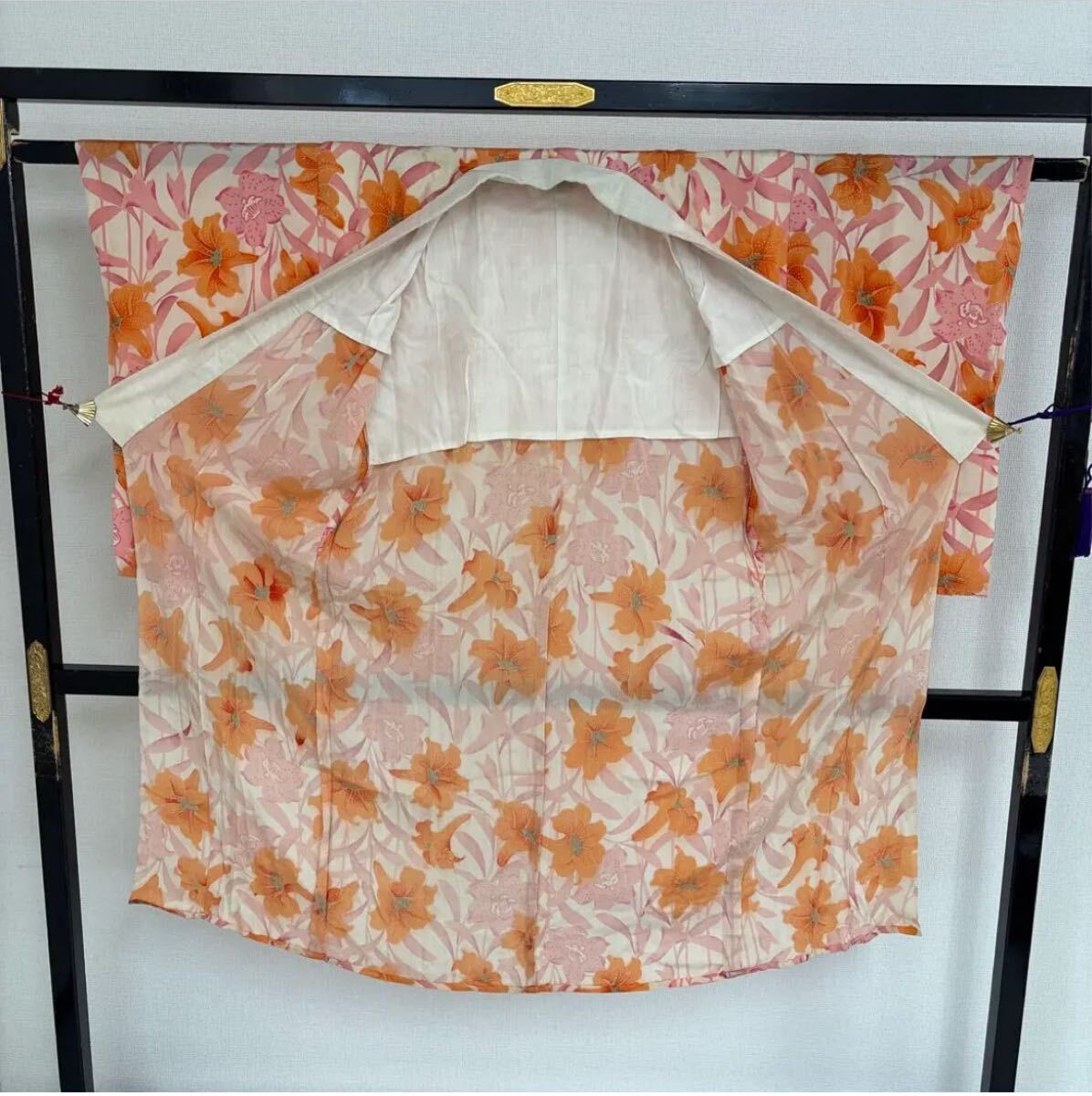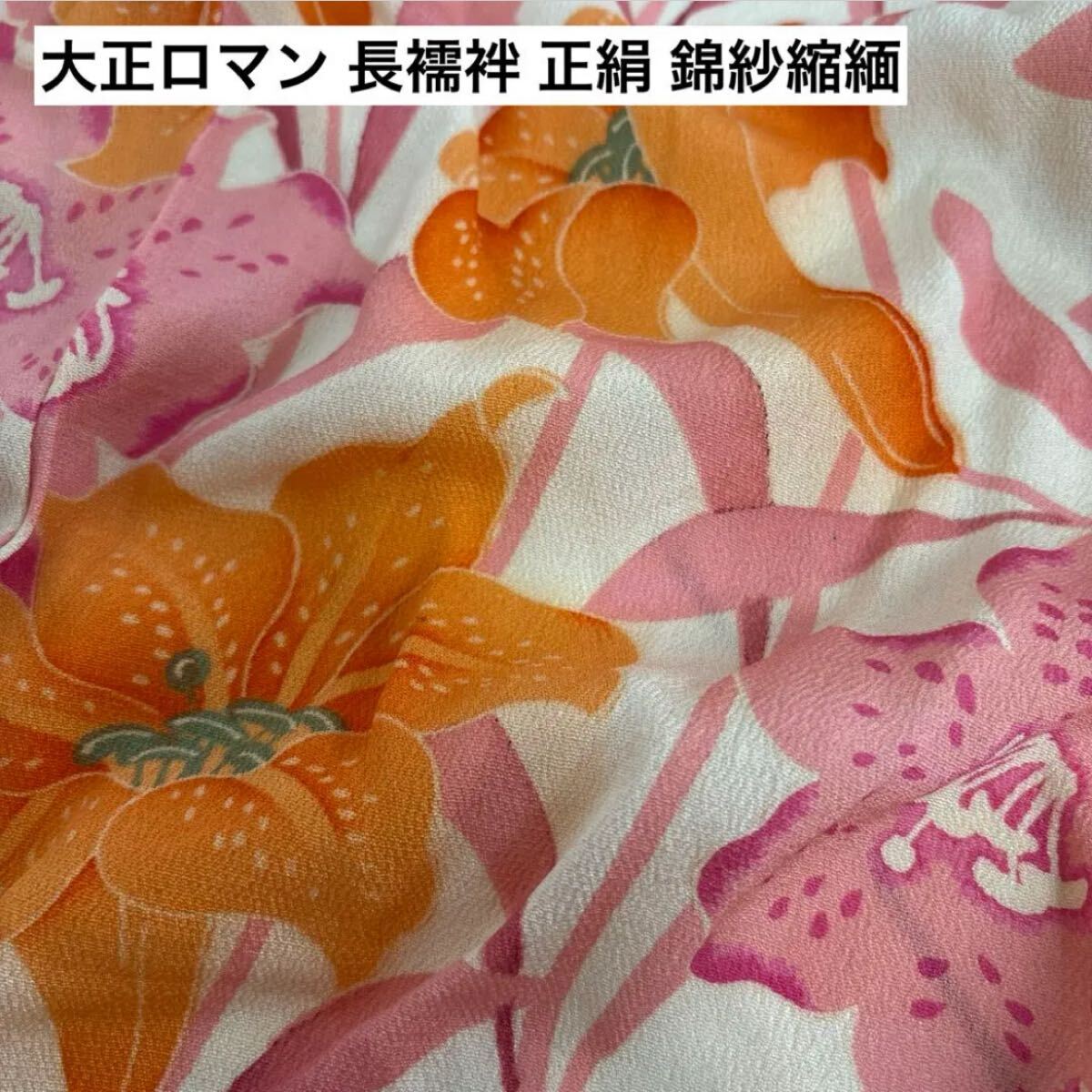 【楓】大正ロマン 長襦袢 正絹 錦紗縮緬 風合い良い花 KU-4106