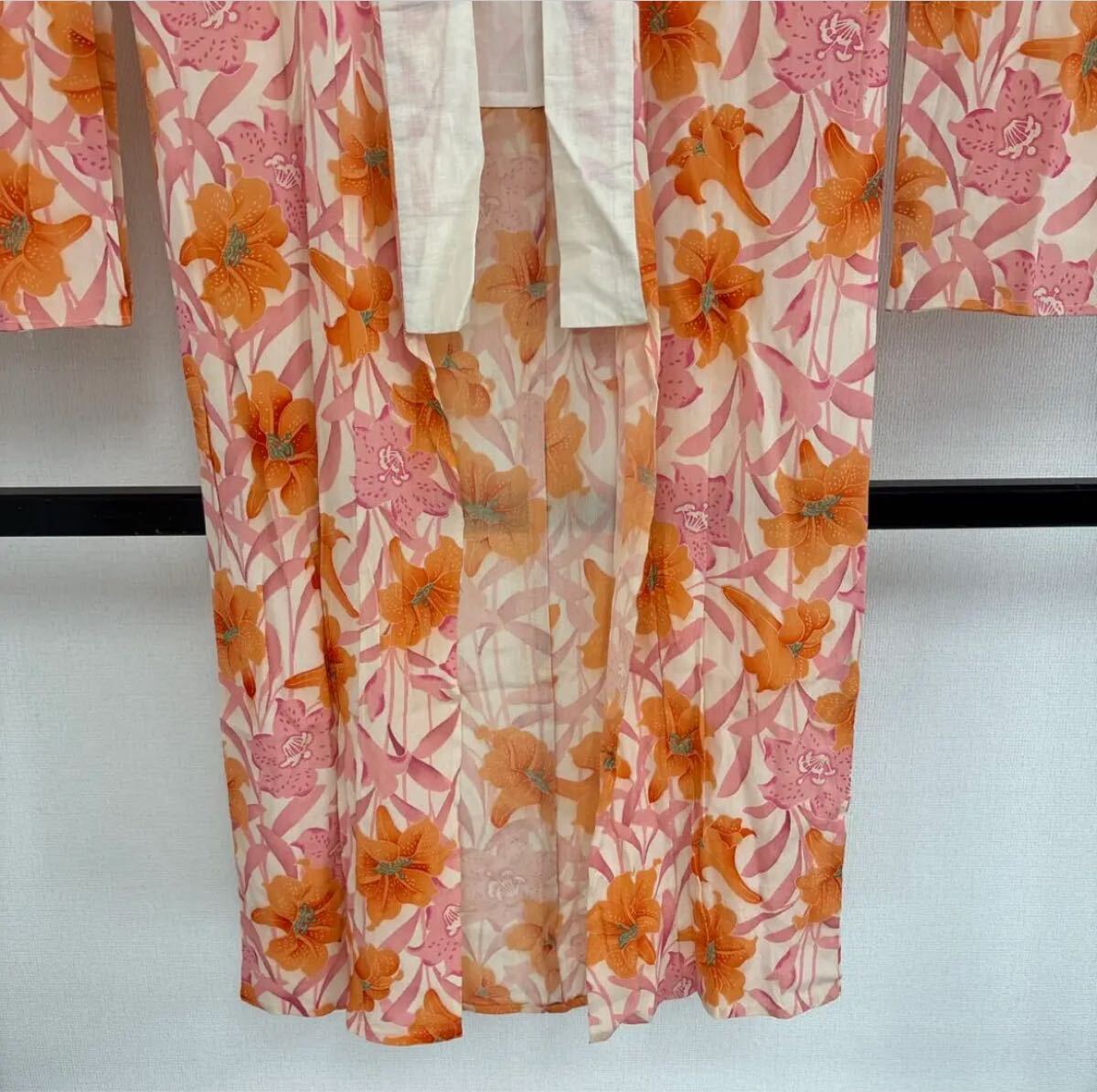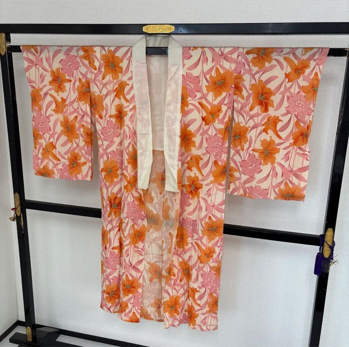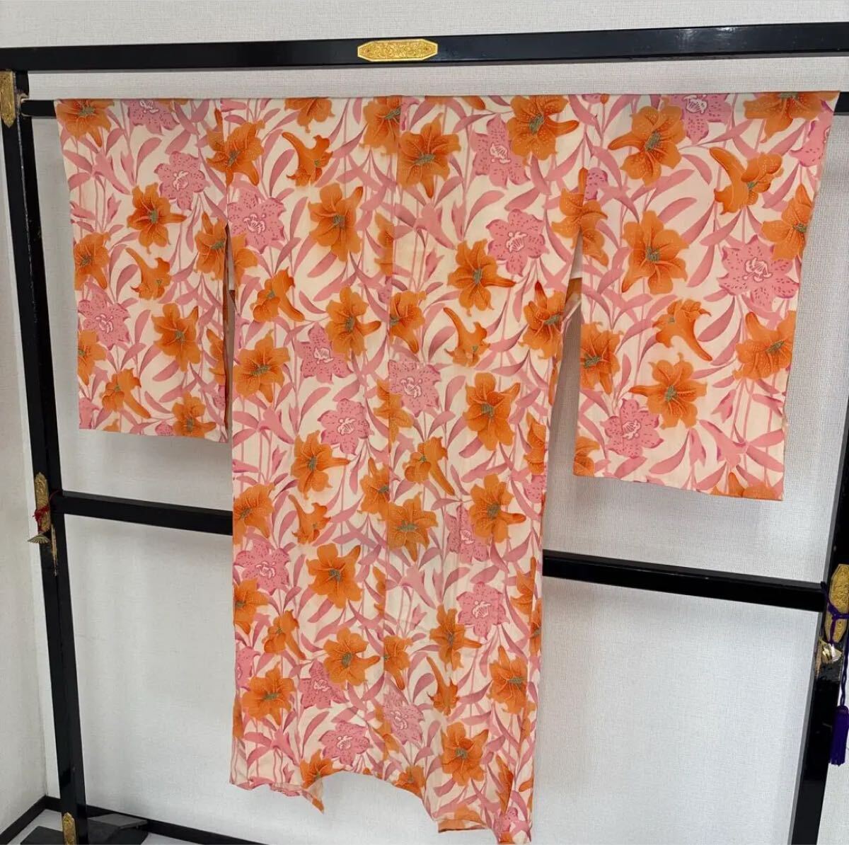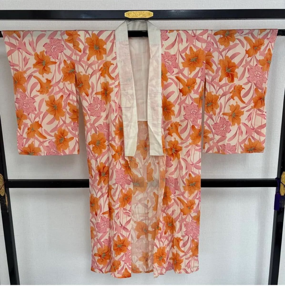 【楓】大正ロマン 長襦袢 正絹 錦紗縮緬 風合い良い花 KU-4106