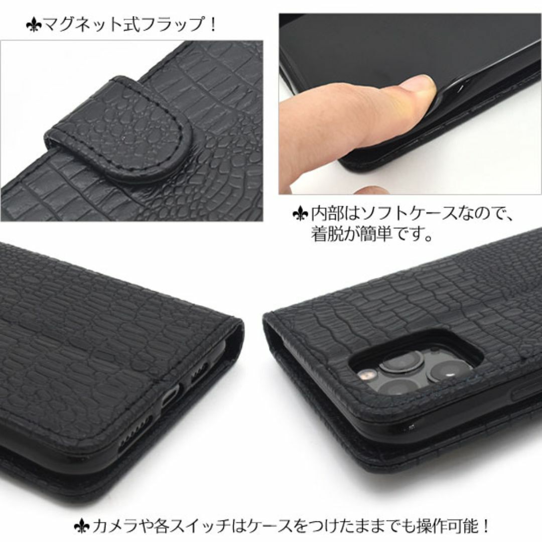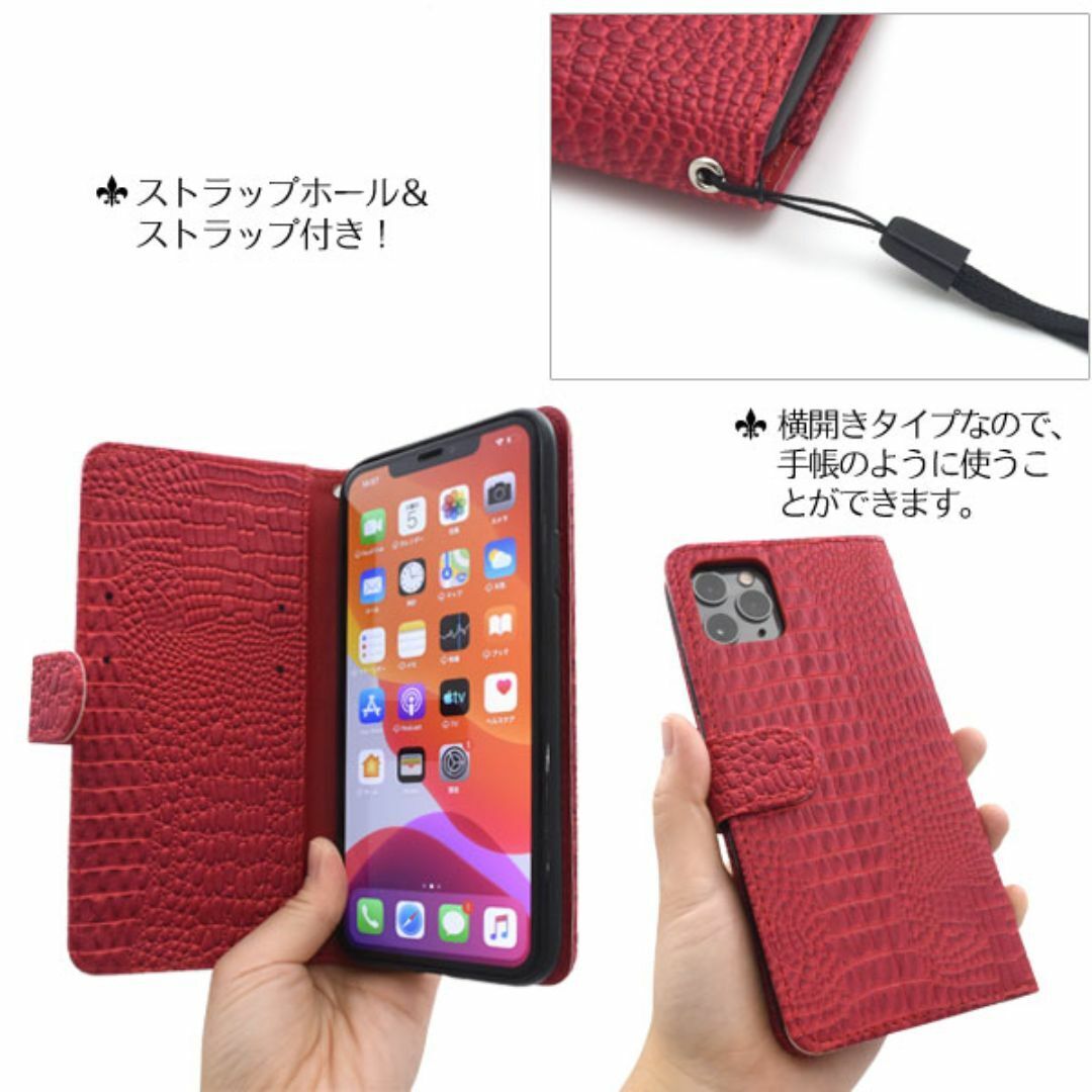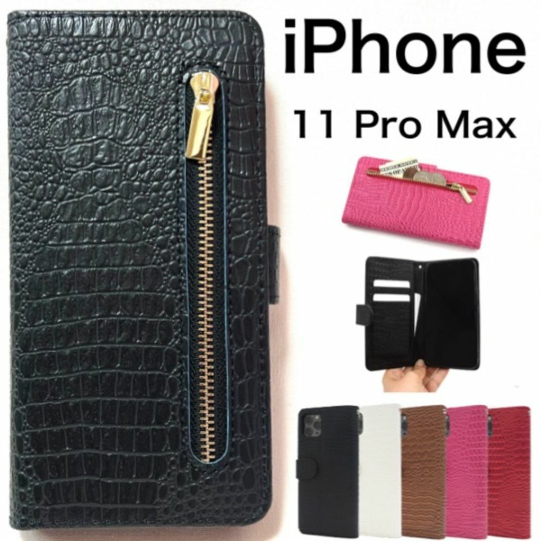 iPhone 11 Pro Max用クロコダイルレザーデザイン手帳型ケース