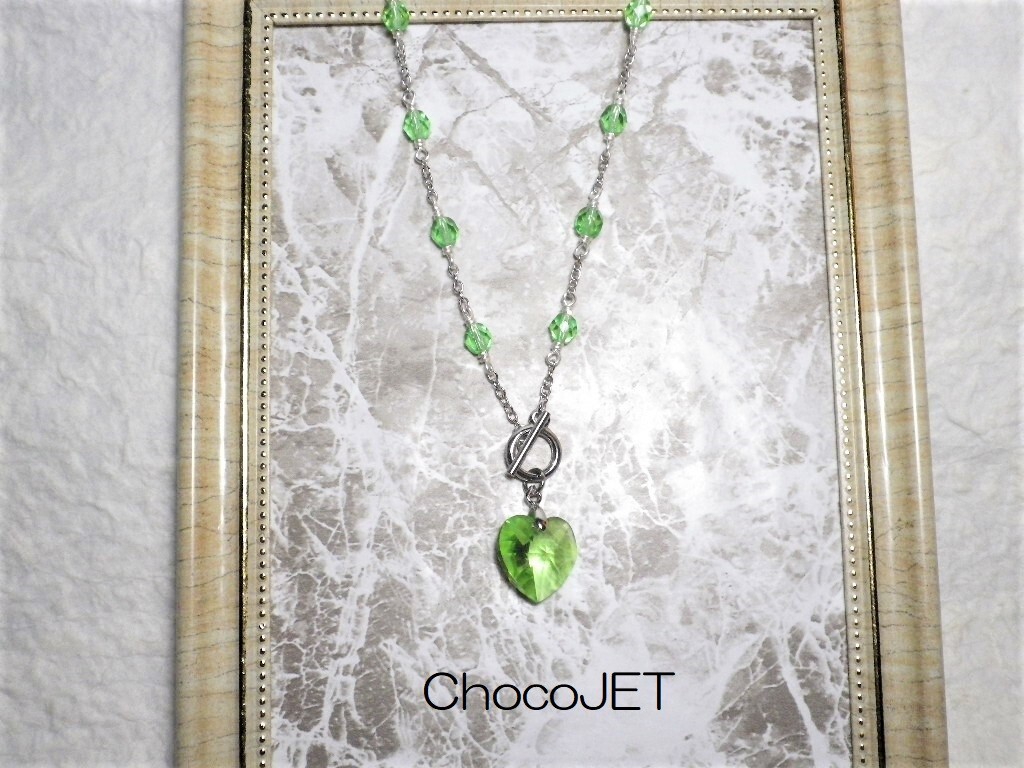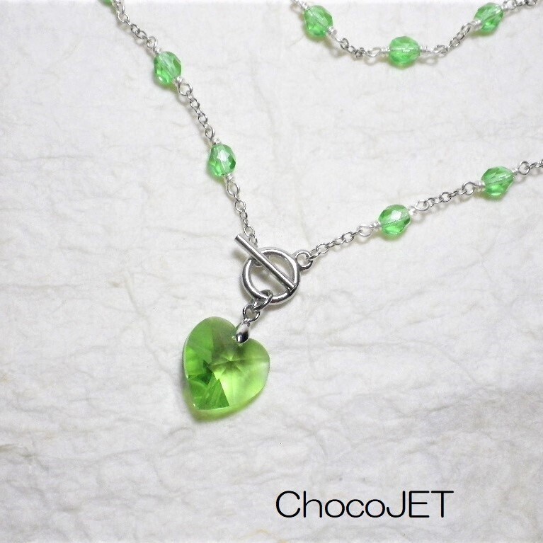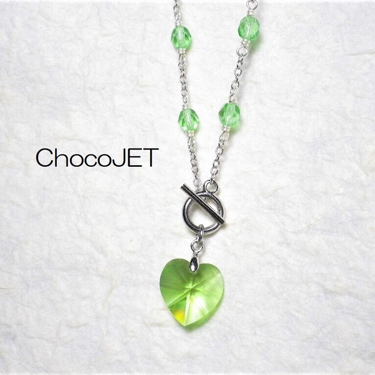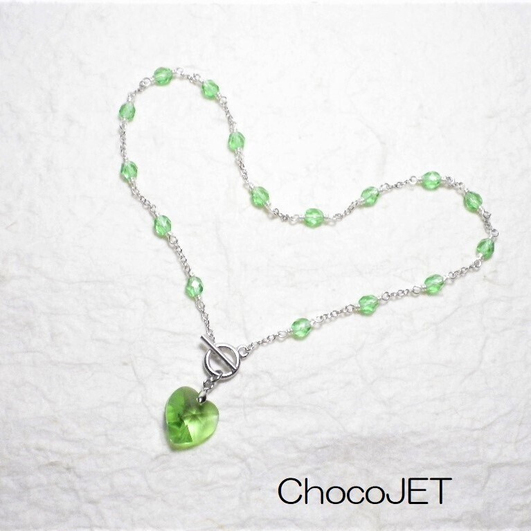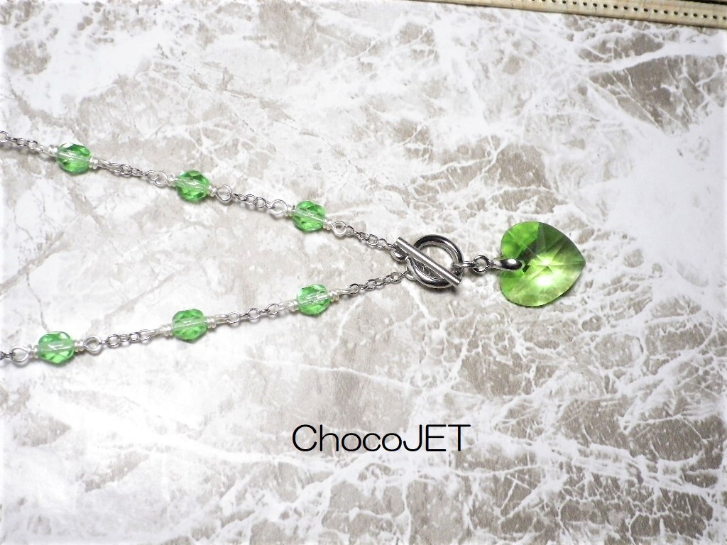 スワロフスキー6202・ペリドット、チェコビーズ6mm、チェーン