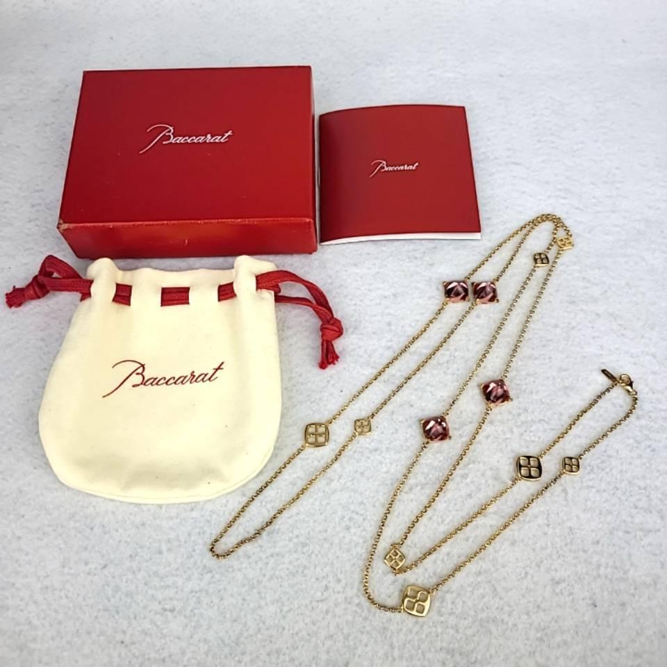 〇極上品〇Baccarat バカラ ミニメディチ クリスタルガラス×SV925 ロング 2連 ネックレス アクセサリー ゴールド系×ピンク系 箱つき
