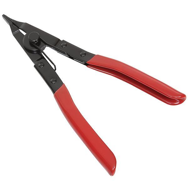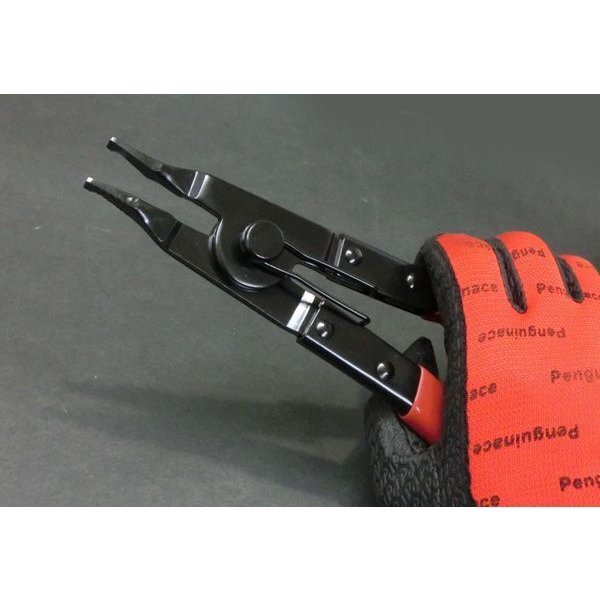 | 商品詳細 | 自動車のトランスミッション、マスターシリンダー、ドライブラインなどに多く採用されているロックリング(Cリング)を脱着するための専用プライヤーです。 ロックリングはスナップリングと異なり、切欠き部に穴が開いていない形状となっています。このロックリングプライヤーは滑り防止のため、先端部表面にローレット加工を施してある上、特に狭い箇所でも確実にCリングを広げられるよう、オフセットチップとなっているのが特徴です。 商品仕様 全 長 : 215mm 最小開口 : 4mm 最大開口 : 27mm 材 質 : カーボンスチール 重 量 : 230g |