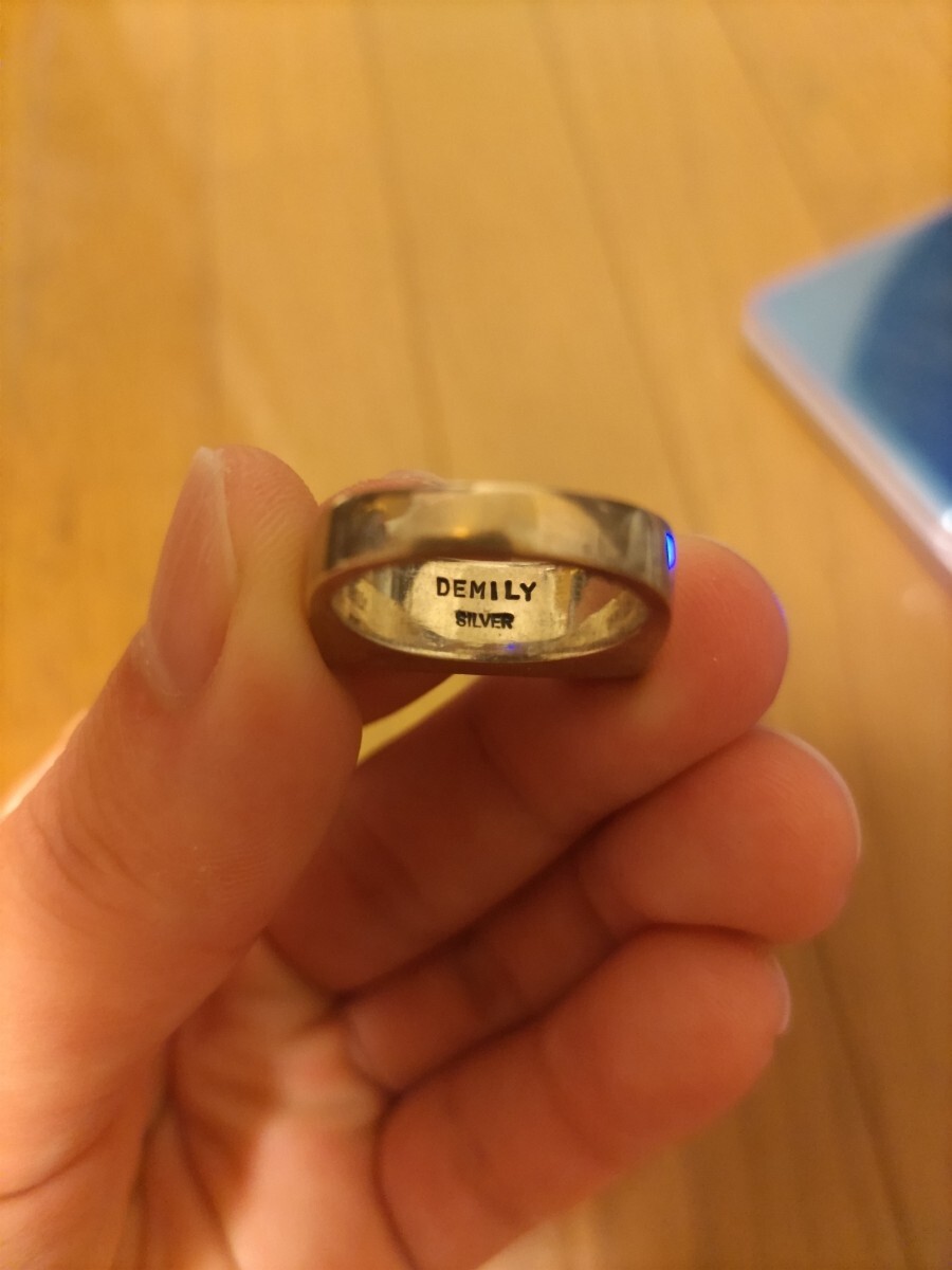 使用状況:5年くらい前に購入した物です。DEMILYというブランドがもうないかもしれません。使用していたもので小傷やシルバー特有のくすみがあります。気になる方は磨いてピカピカにしても良いかと思います。他にはないデザインでとてもかっこいいです。