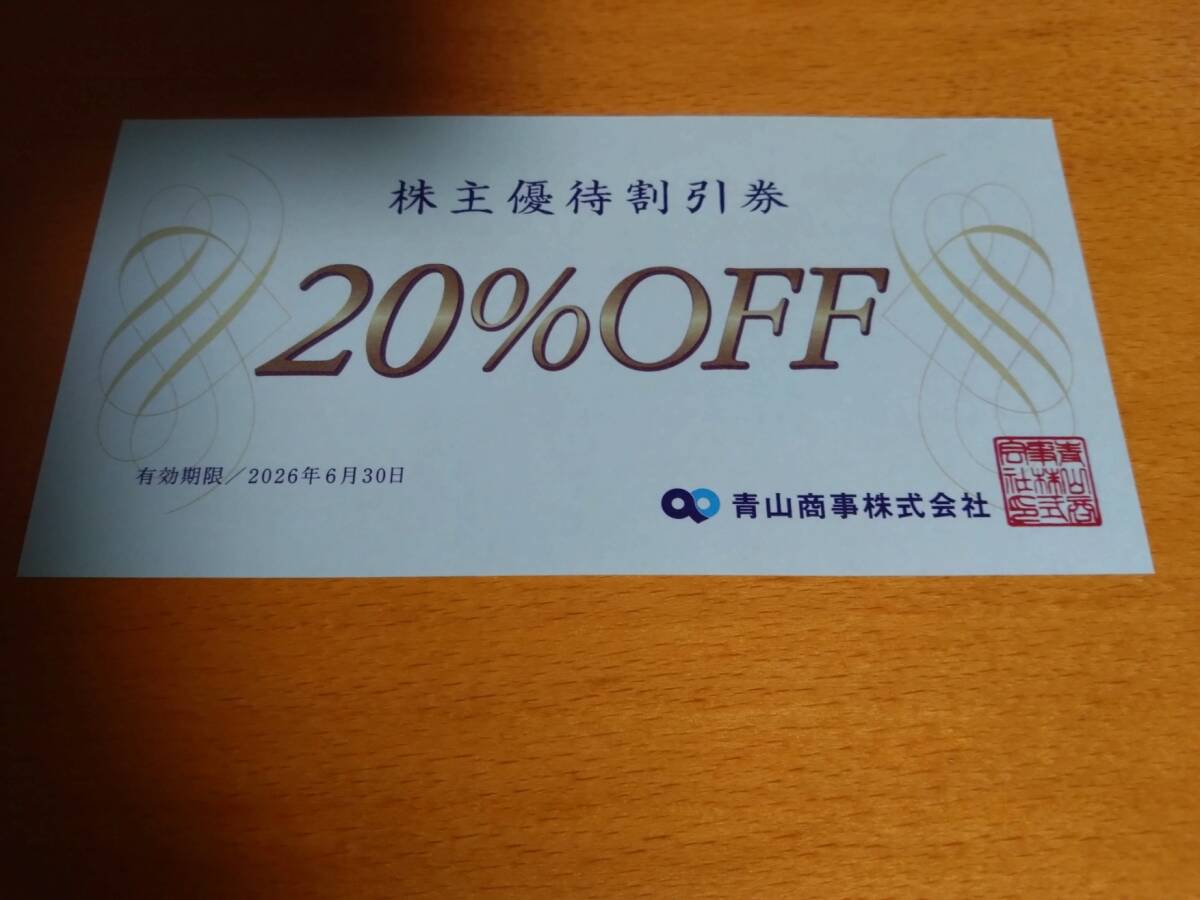 青山商事 株主優待 20% 割引券 1枚 2026/6/30 追加OK