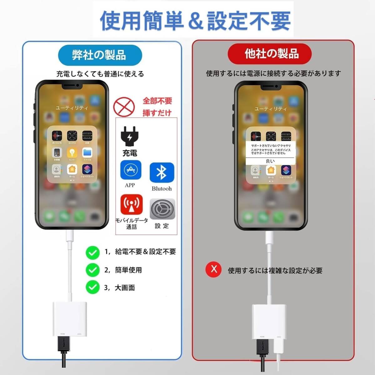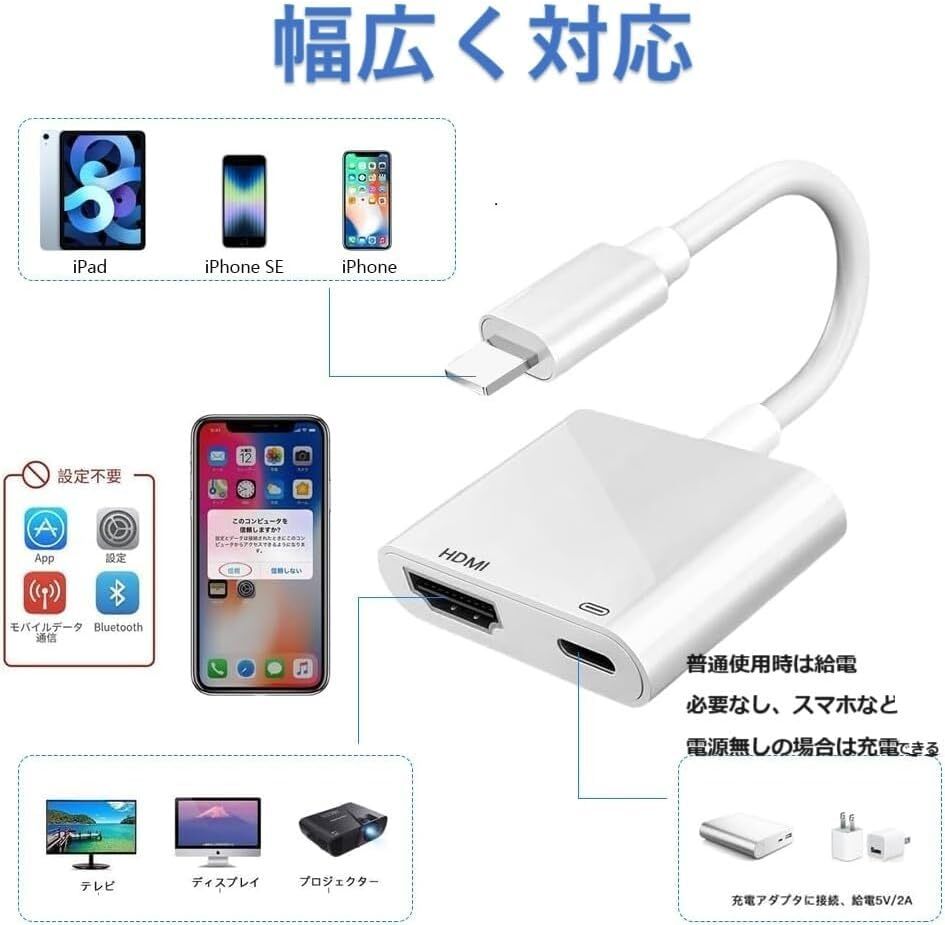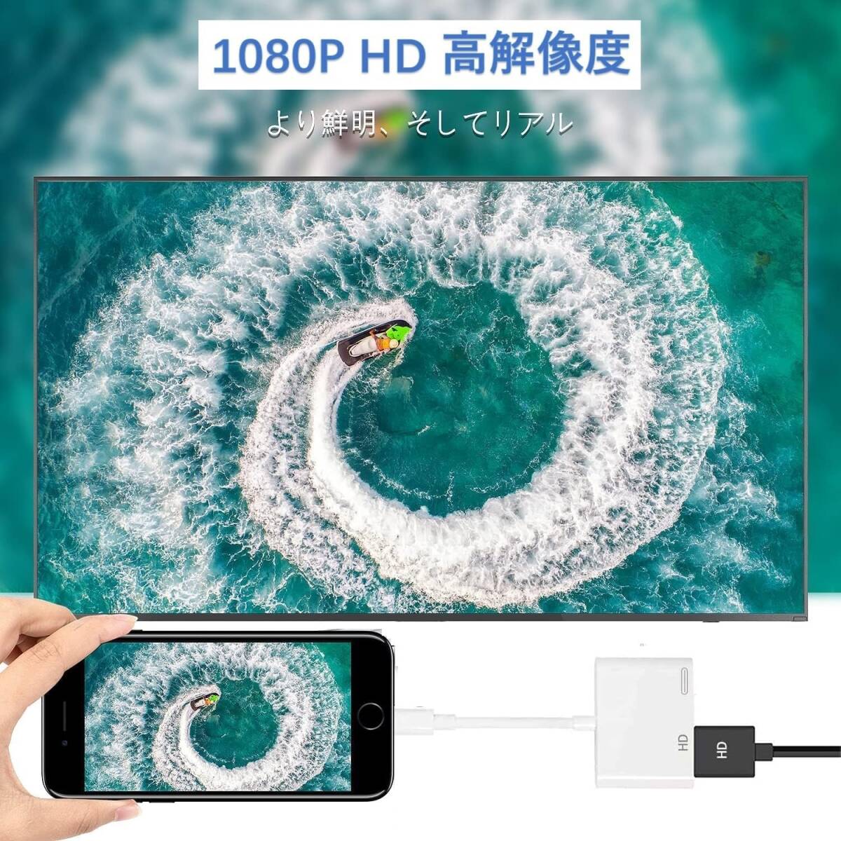 iphone hdmi変換ケーブル hdmi変換アダプタ 1080PフルHD 設定不要 給電不要 ゲーム遅延なし iPad/iPhone/iPod全対応 (iOS全シリーズ対応)