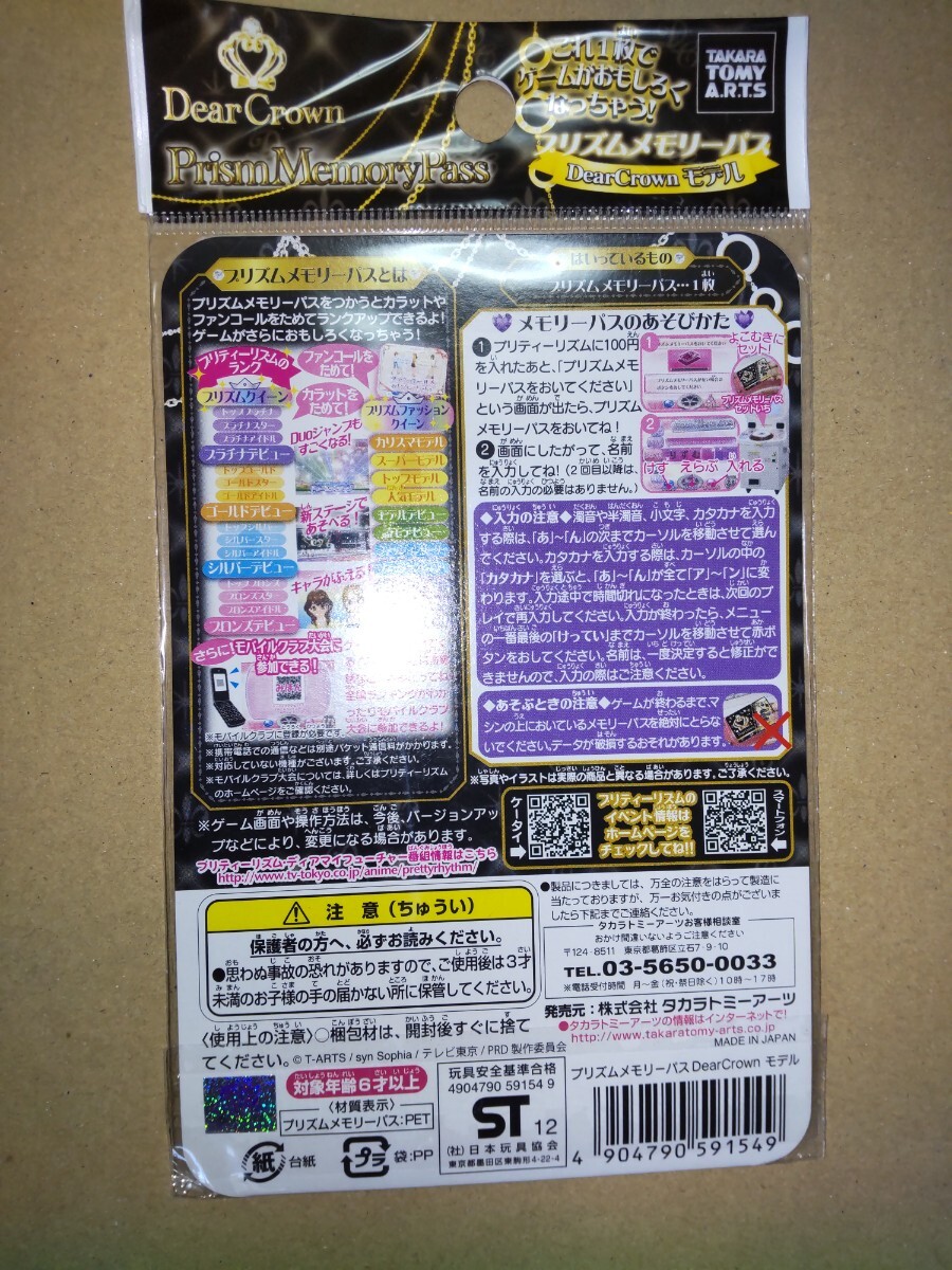 わけあり品 未開封 プリティーリズム プリズムメモリーパス DearCrownモデル