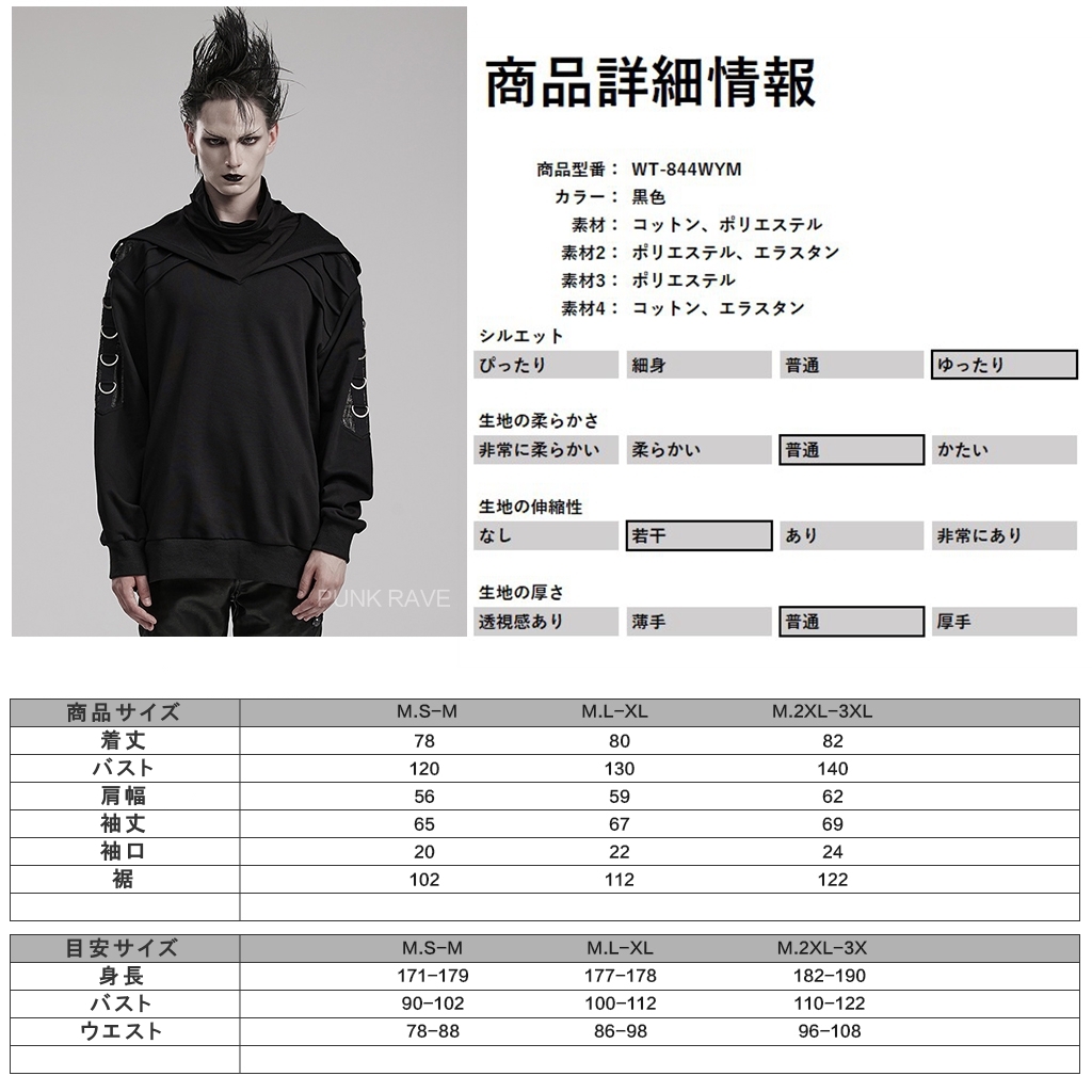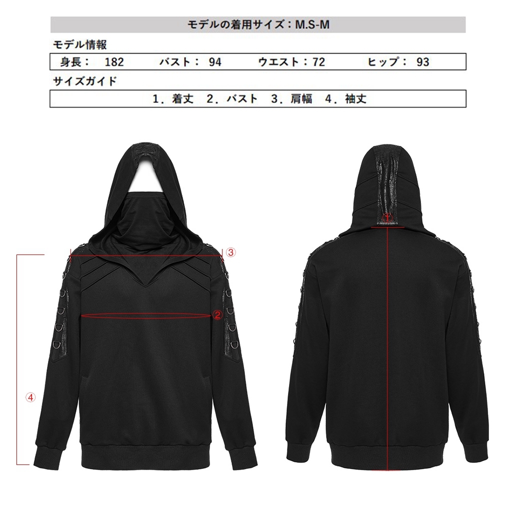 WT-844WYM-BK-L-XL フェイスマスク付きプルオーバーデザイン パーカー ゴスロリワールド ゴシック パンク ロック ビジュアル系 V系