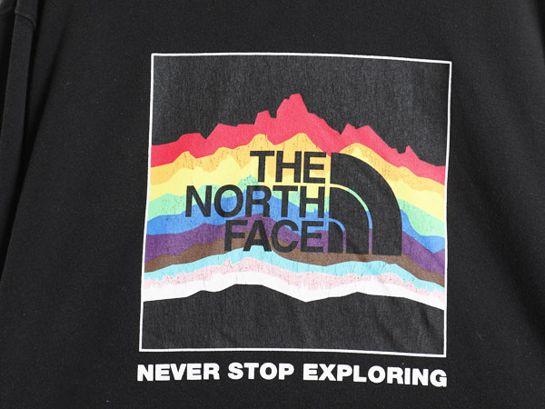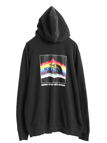 | 商品名 | ノースフェイス 両面 プリント スウェット フード パーカー メンズ XL 古着 グラフィック プルオーバー トレーナー 裏起毛 大きいサイズ 黒 |