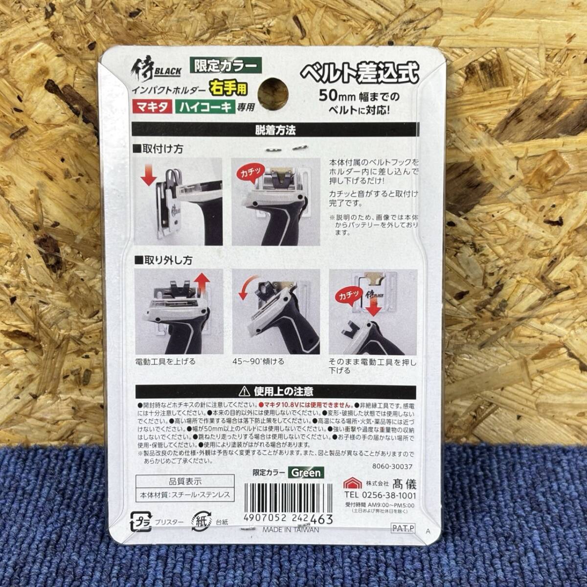 【新品未使用品】高儀 侍BLACK/ブラック インパクトホルダー 右手用 限定カラー グリーン 30037 マキタ/ハイコーキ専用 腰道具 A993