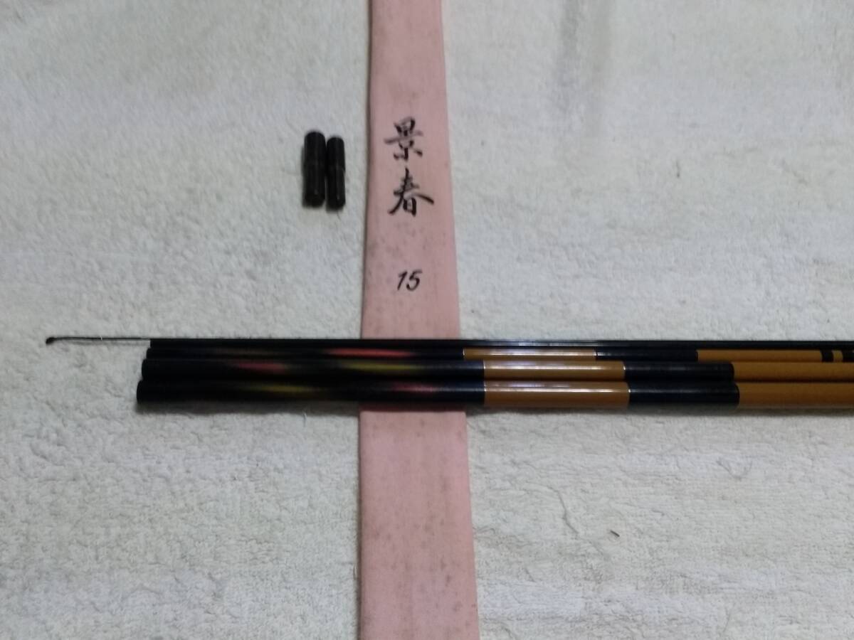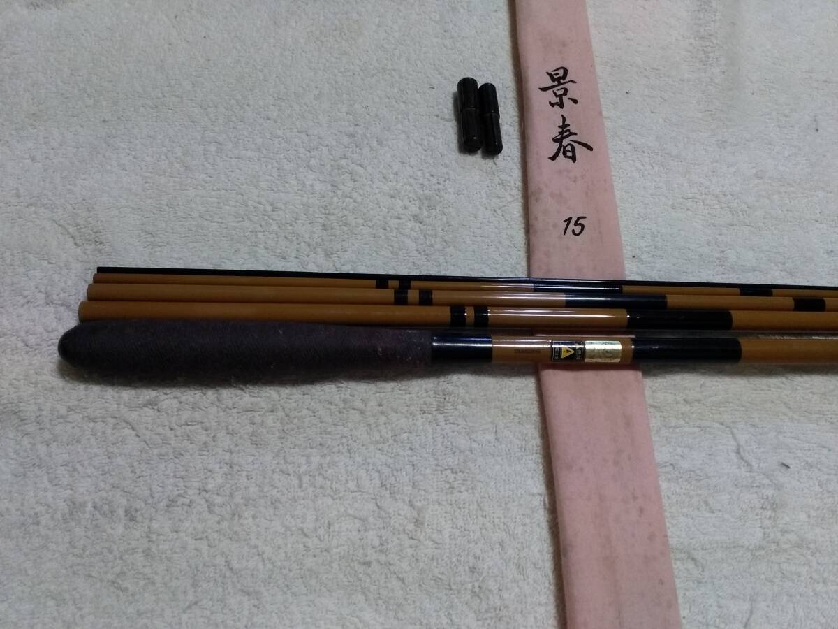 付属品は画像の通り、オリジナルの竿袋(汚れあります)、口栓になります。竿の状態ですが、口割れ、欠け、深い傷などなく綺麗です。薄い傷が有りますが、艶もあり良い状態だと思います。私感的には綺麗な状態だと思います。穂先は純正ですが、トップを回転トップに交換しています。詰めはオークション終了後48時間以内にご連絡の方のみご入札下さい。落札後取り引きナビにてご連絡させて頂きます。ご入札後のキャンセル、返品。クレーム等受されない方のみ入札お願いします。送料はヤマト運輸の元払いで、九州から関東まで1600円です。宜しくお願いします。