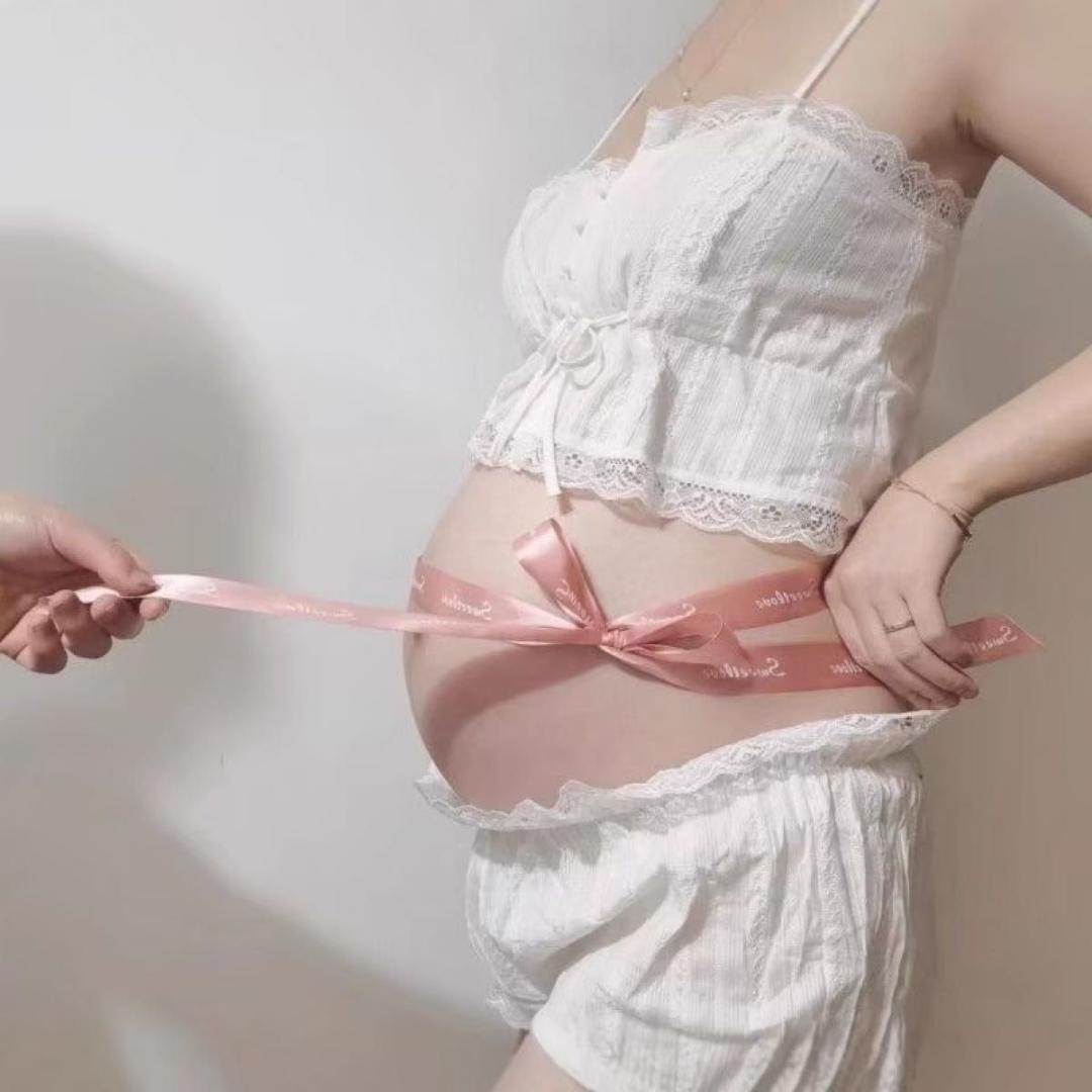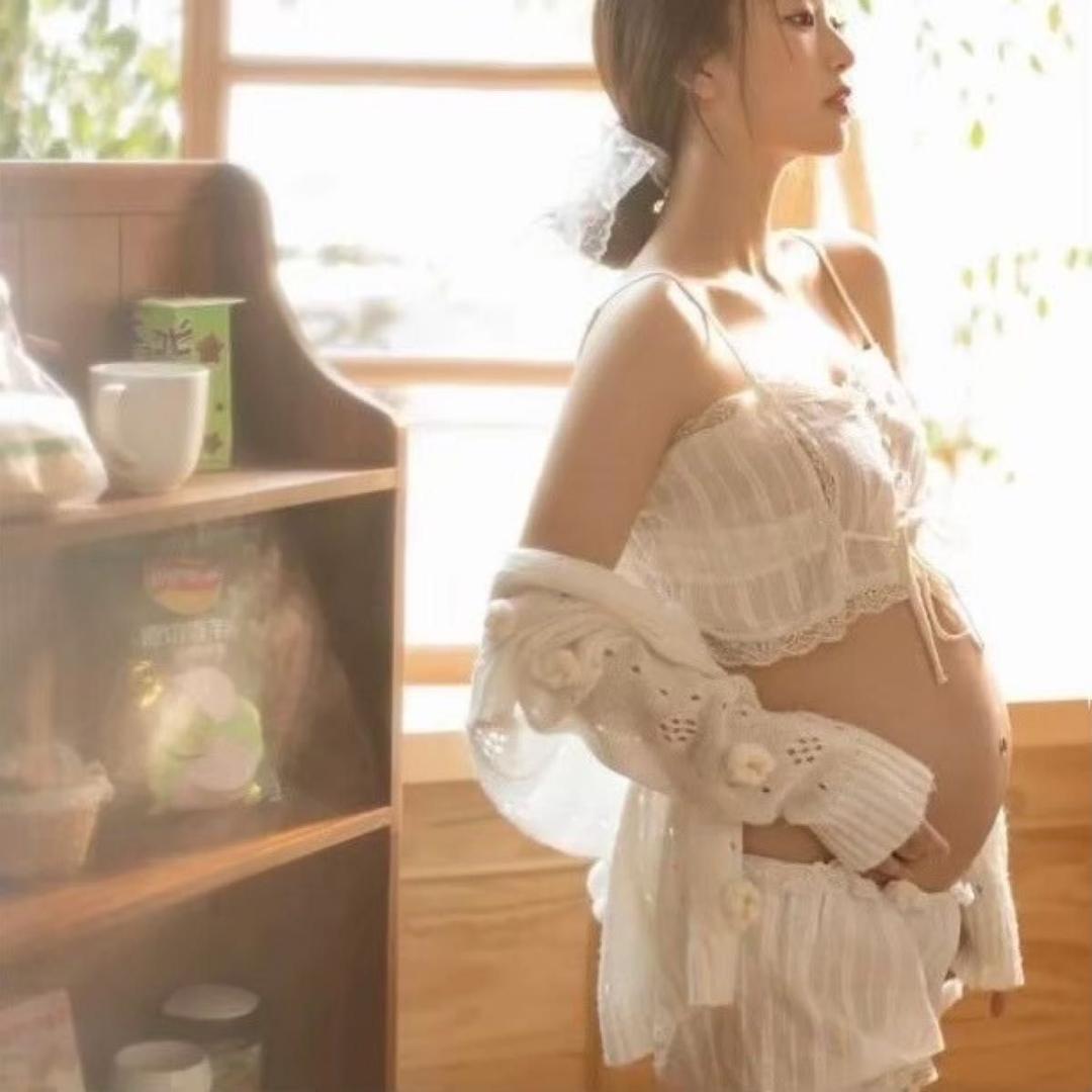 ふんわりとしたレース素材が特徴のマタニティフォト用上下セットです。