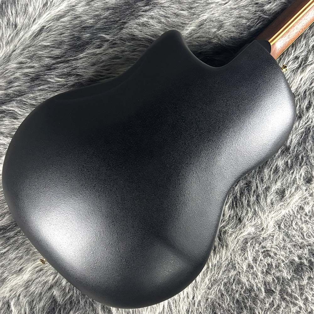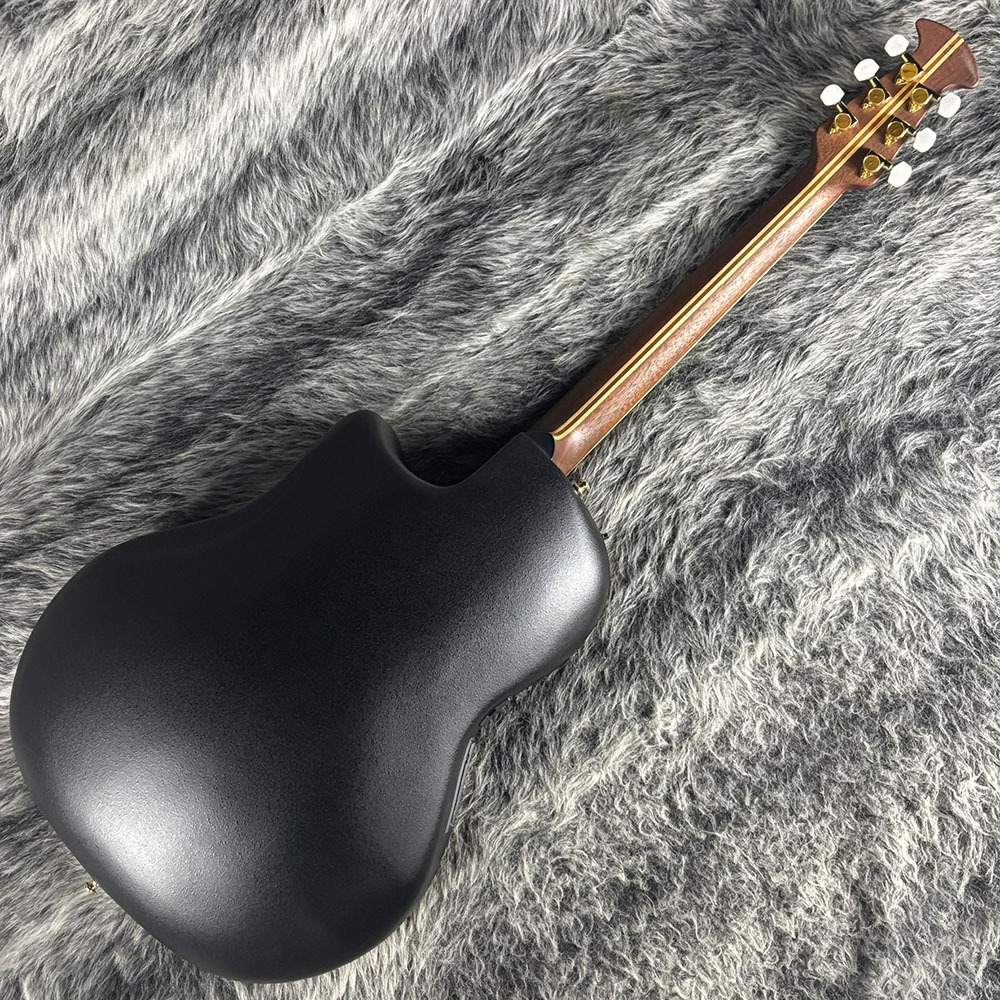 AAAグレードのシトカスプルーストップにリラコード樹脂を使用したディープボウルのカッタウェイボディ、マホガニーネック、エボニー指板/ブリッジといったマテリアル。