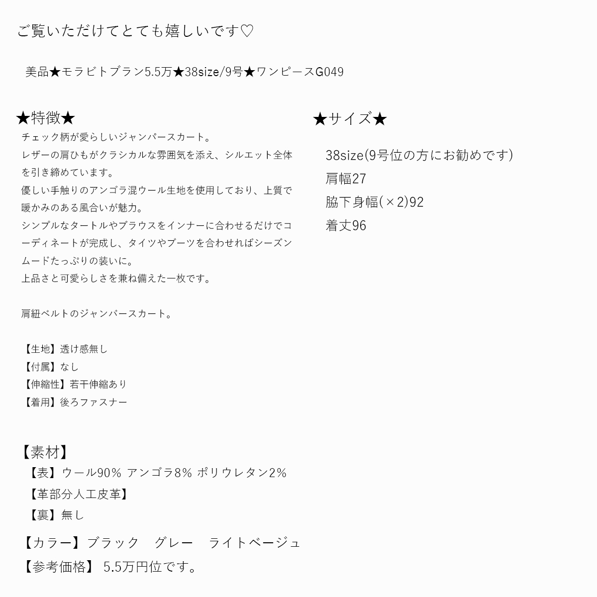 美品★モラビトブラン5.5万★38size/9号★ワンピースG049