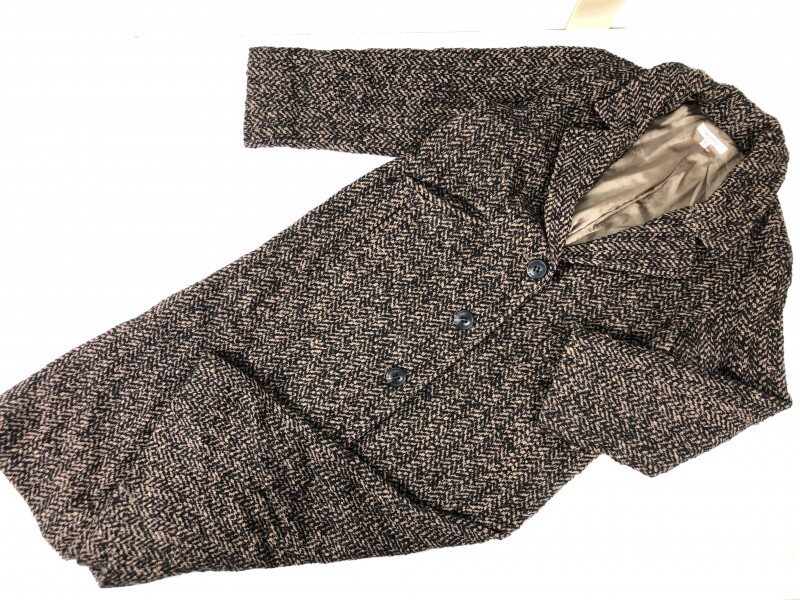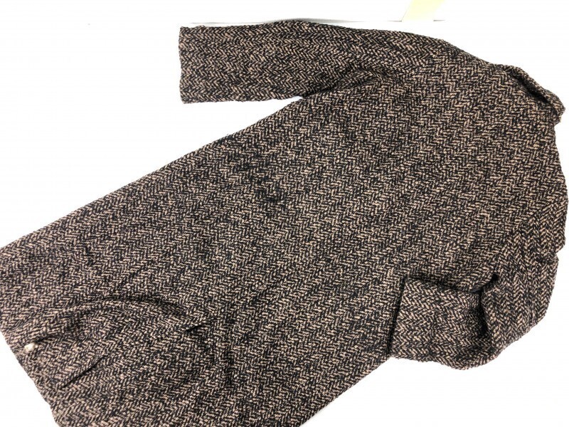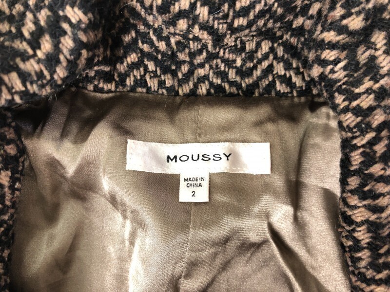 マウジー moussy レトロ モード ウール混 ヘリンボーン ツイード 総裏地 ロング ラペルド ボタン コート レディース 2 黒/ベージュ です。