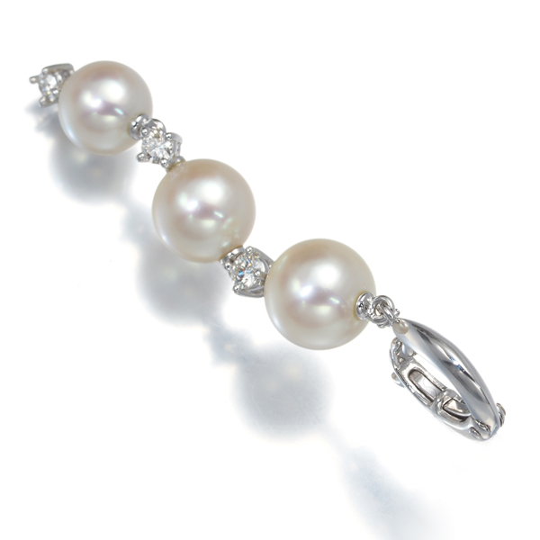 上品なパールホワイトの地色を持つタサキ厳選アコヤ真珠の美しい輝きを上質ダイヤモンドと共に並べたエレガントなジュエリーです。 |