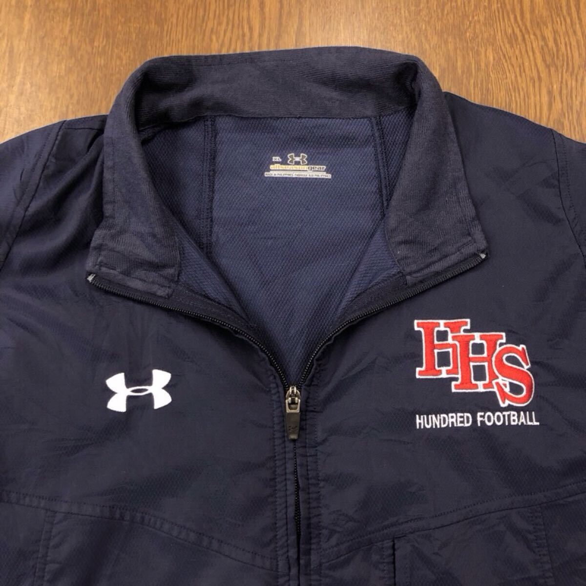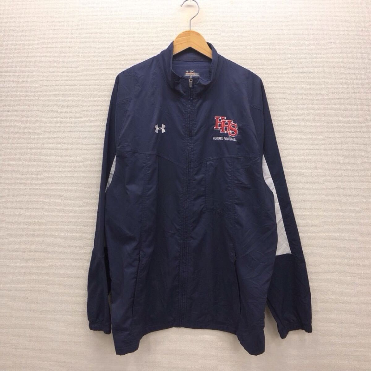【GH552】UNDER ARMOUR XLサイズ ウィンドブレーカー ネイビー イヤホンホール付き 袖口ゴム ブランド古着 アンダーアーマー 送料無料