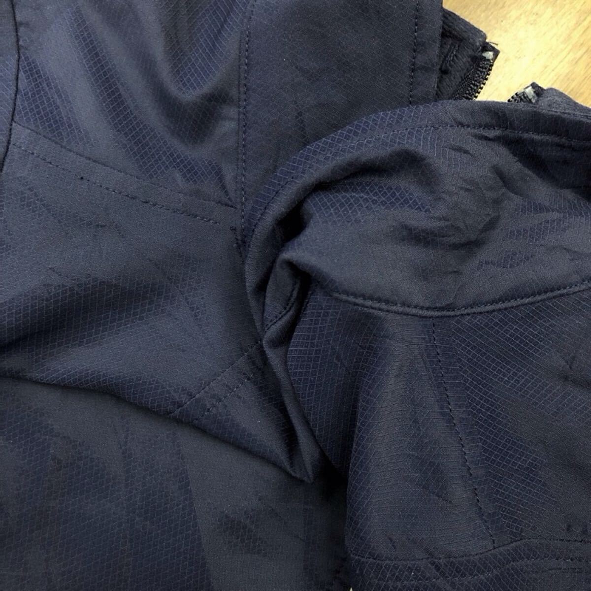 【その他】イヤホンホール付き(左胸ポケット)、左胸ポケット付き(ジップ)、ポケットジップ、袖口ゴム、襟ぐり薄起毛、刺繍ロゴ。