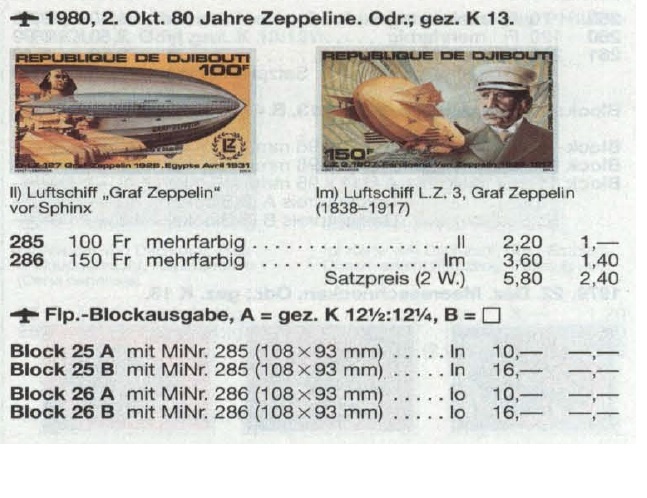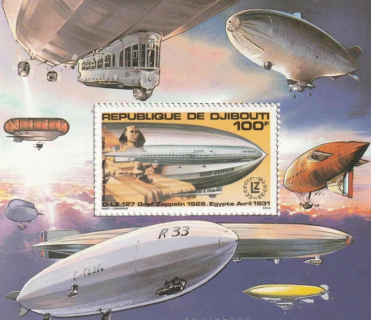(ジブチ)1980年Zeppelin100F小型シート、マイケルカタログ評価10ユーロ(海外より発送、説明欄参照)
