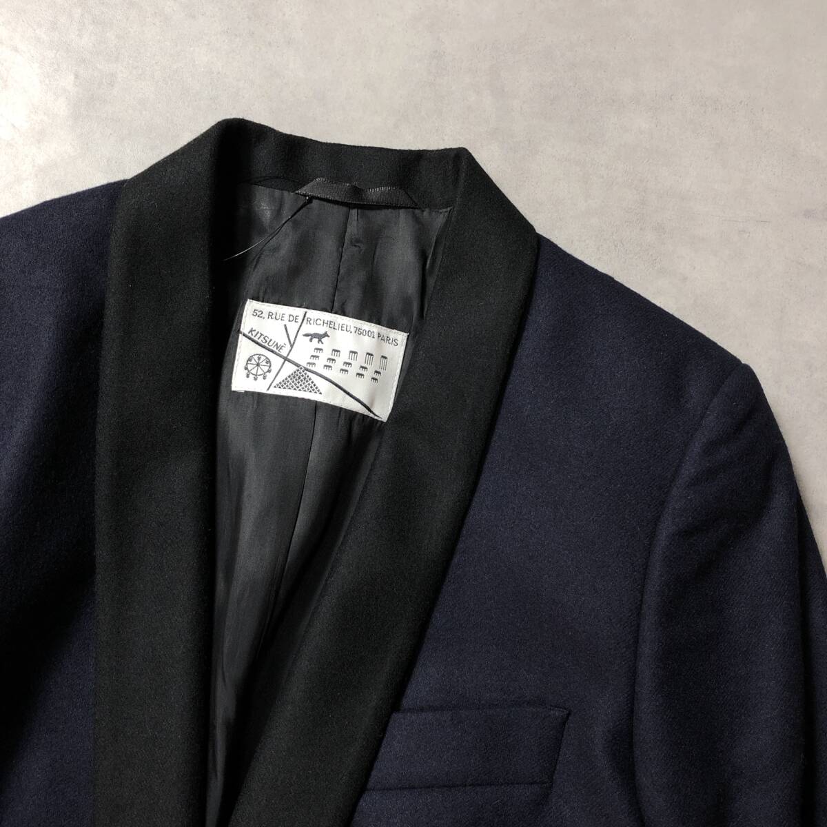 商品名 :WQ656●KITSUNE:ショールカラータキシードウールジャケット ●S● 紺/黒 キツネ