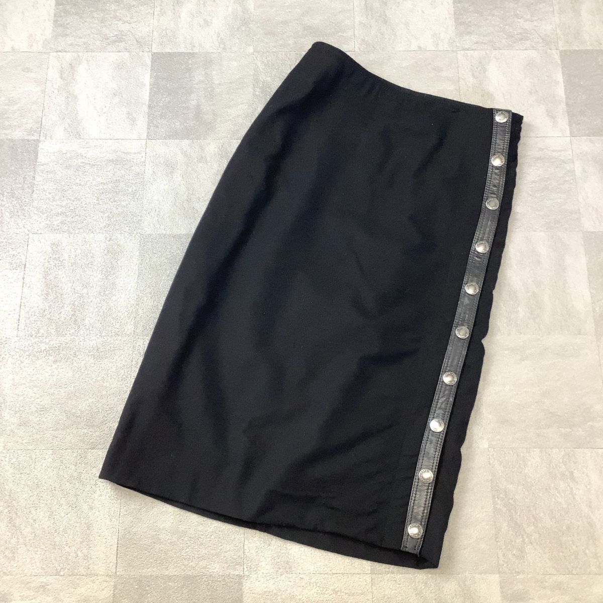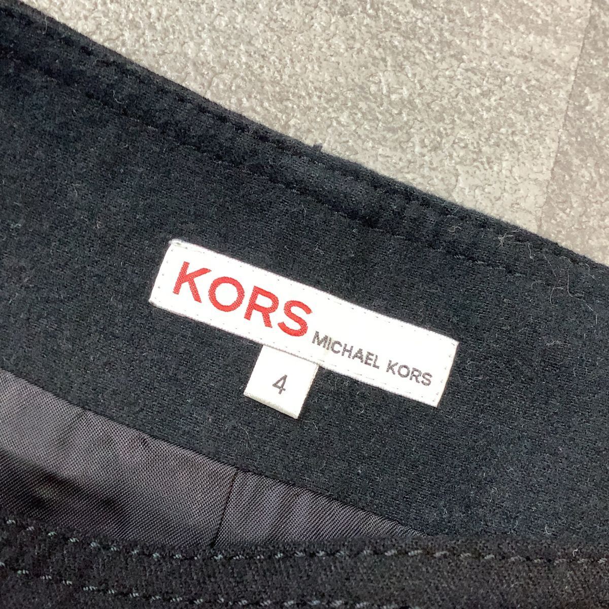 KORS MICHAEL KOSE マイケルコース ラムレザー 異素材 本革 ウールスカート レディース サイズ4 W63−66 H89−93 ブラック