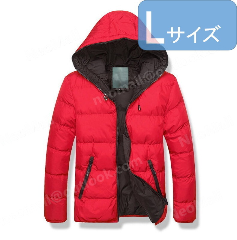 フード付き メンズ ダウン 004 レッド×ブラック Lサイズ 中綿ダウン 中綿ベスト キルティング アウター 防寒 秋冬 暖かい