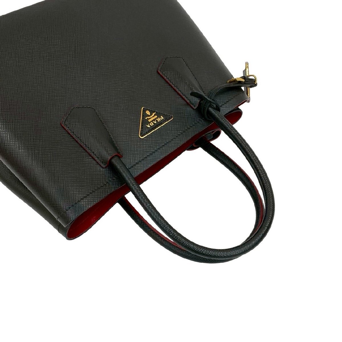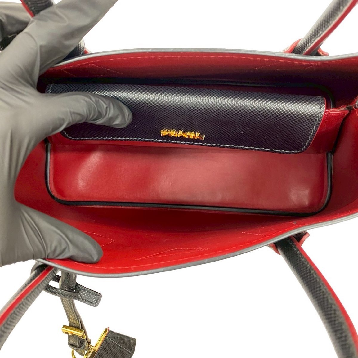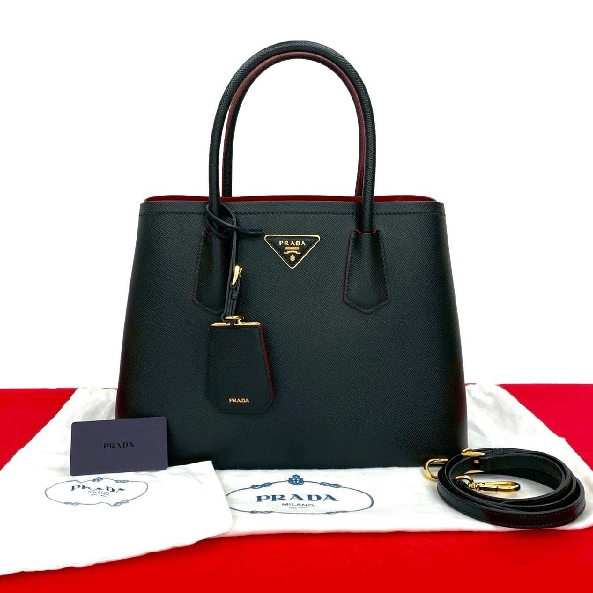 極 美品 袋付 PRADA プラダ 三角ロゴ 金具 サフィアーノ レザー 2way ハンドバッグ トートバッグ ショルダーバッグ ブラック b86-7