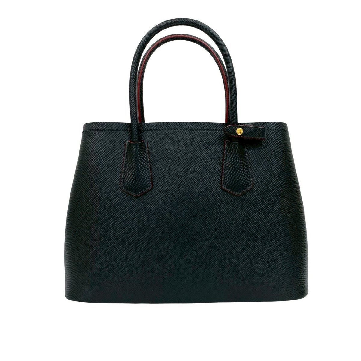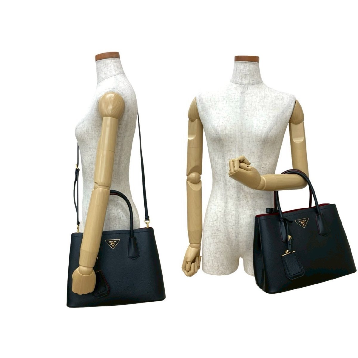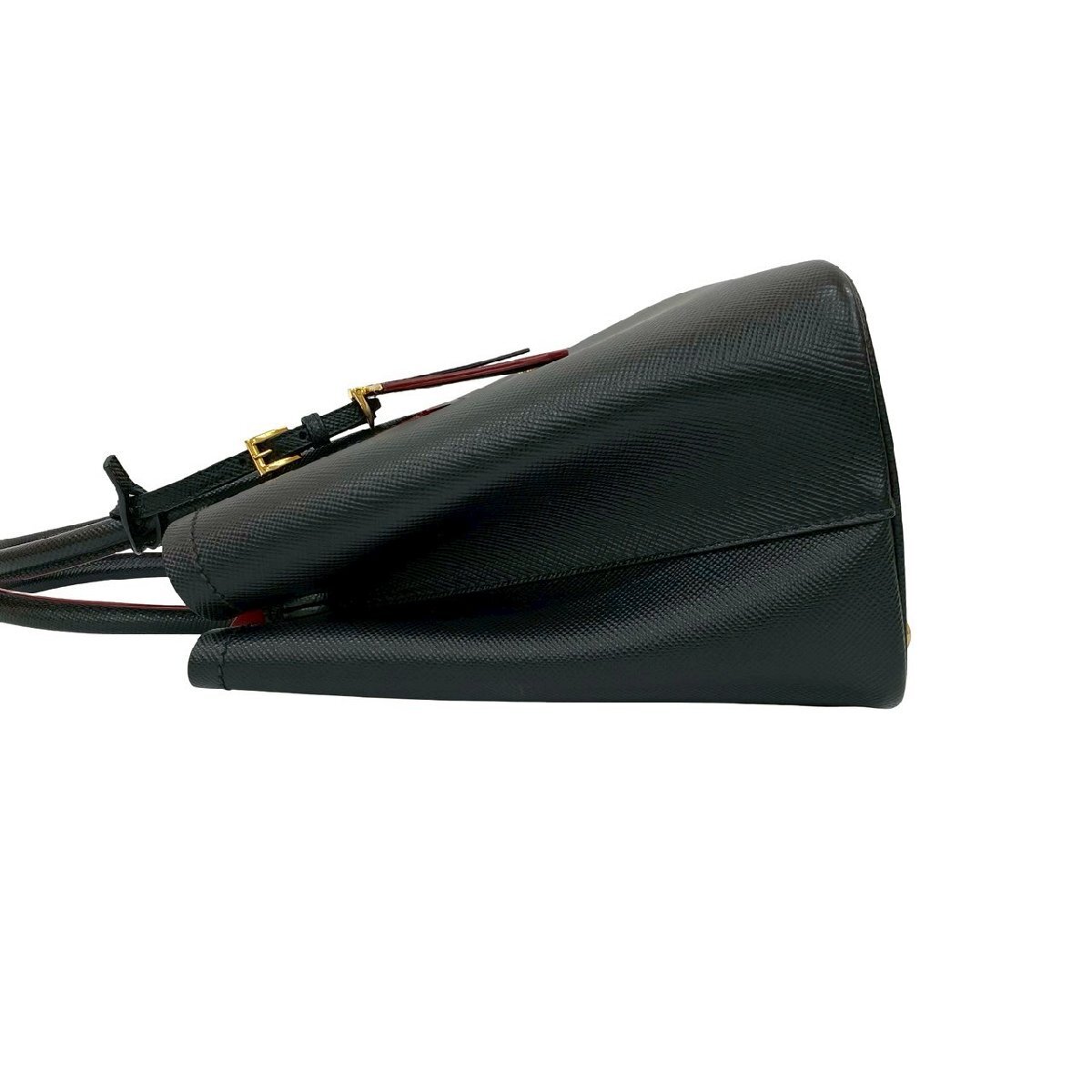 極 美品 袋付 PRADA プラダ 三角ロゴ 金具 サフィアーノ レザー 2way ハンドバッグ トートバッグ ショルダーバッグ ブラック b86-7