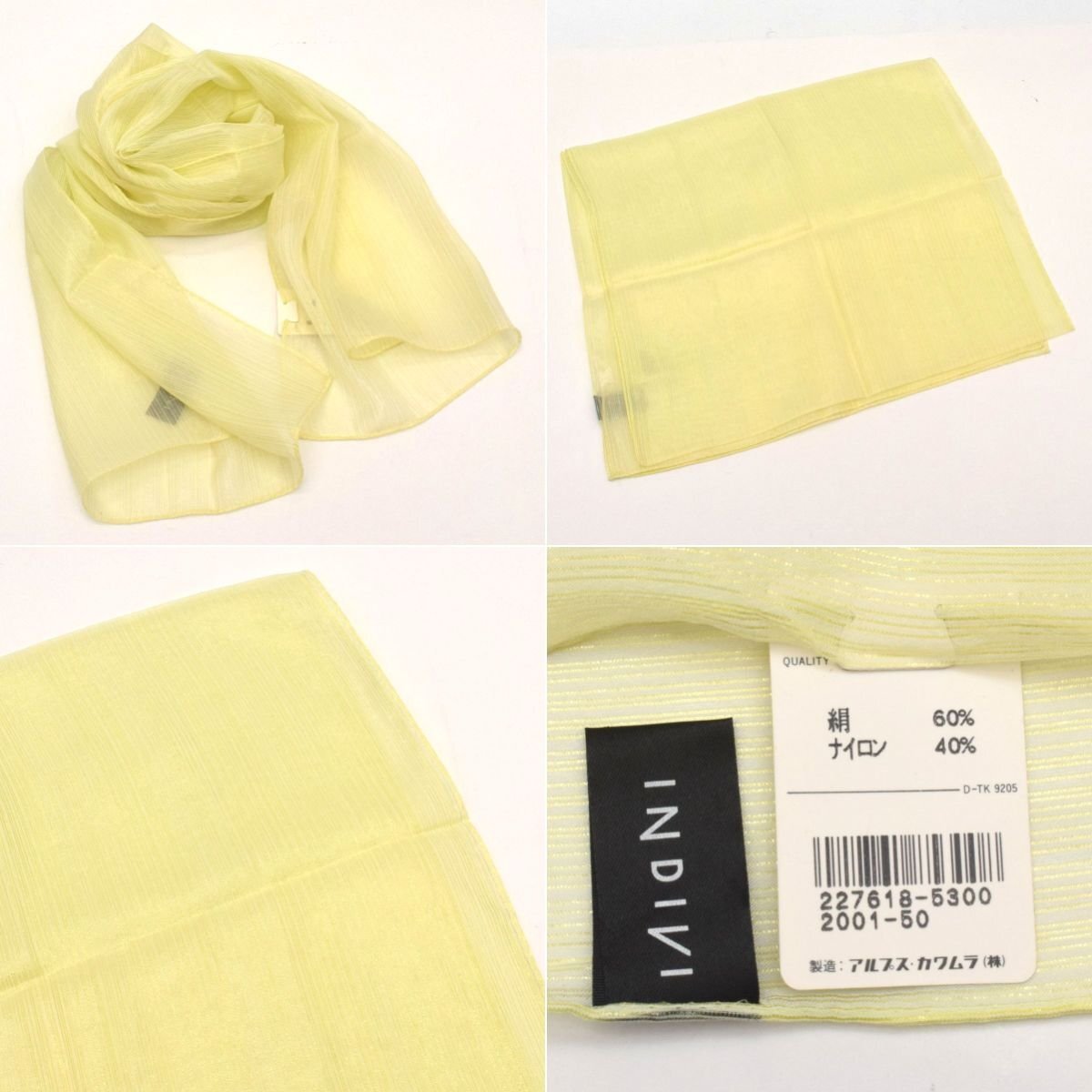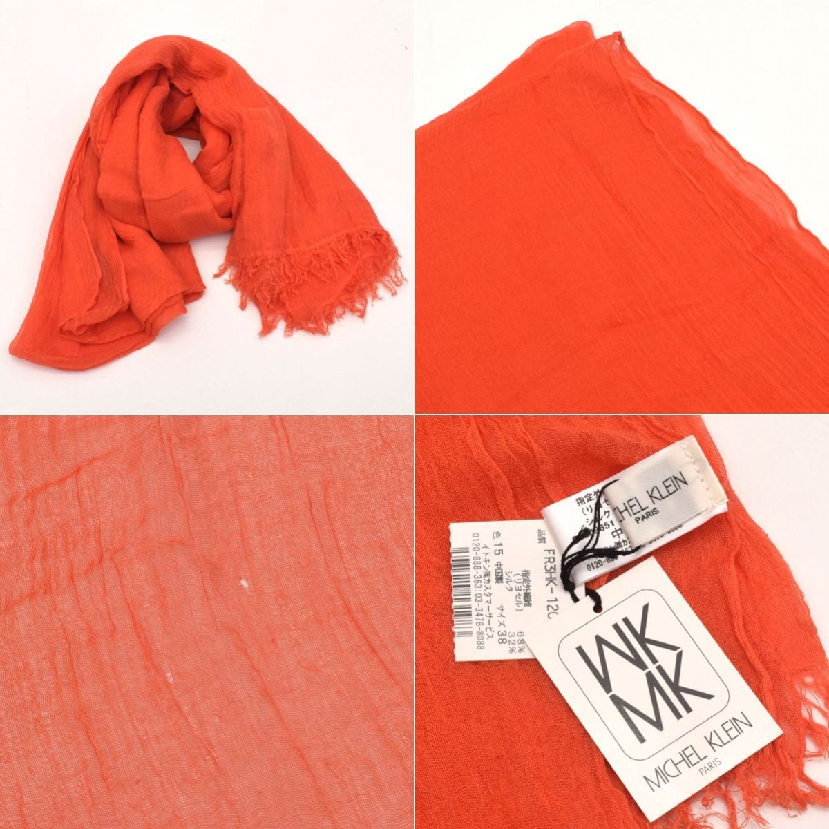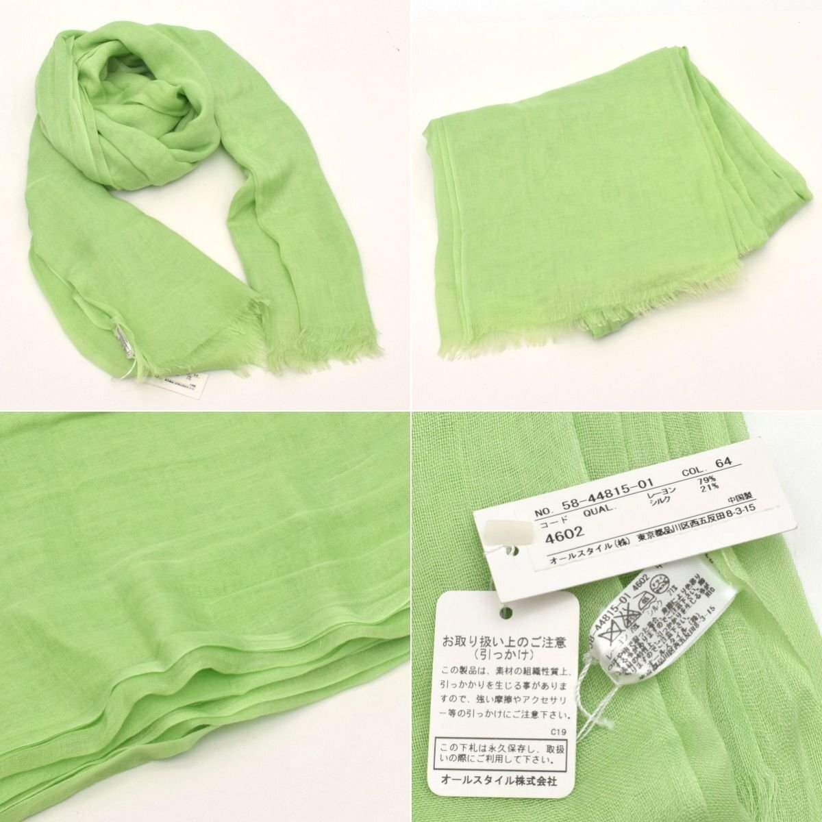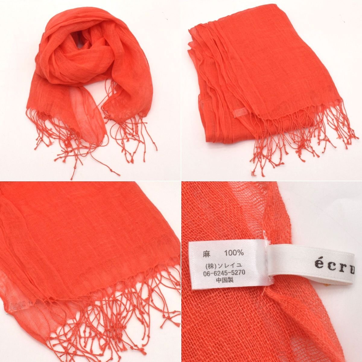 | ミッシェルクラン:W120×H200cm 、リヨセル68% シルク32% ecruefil:W46×H209cm 、麻100% ポロラルフローレン:W105×195cm、セルロース繊維80% ウール20% Mixing blue:W100×H202cm、レーヨン79% シルク21% MACKINTOSH PHILOSOPHY:W59×H167cm、綿90% 絹10% LA JOCONDE:W89×H89cm、素材記載なし laf...:W71×H208cm、綿100% INDIVI:W34×H126cm、絹60% ナイロン40% ※実寸サイズの為、多少の誤差はご容赦ください。 |