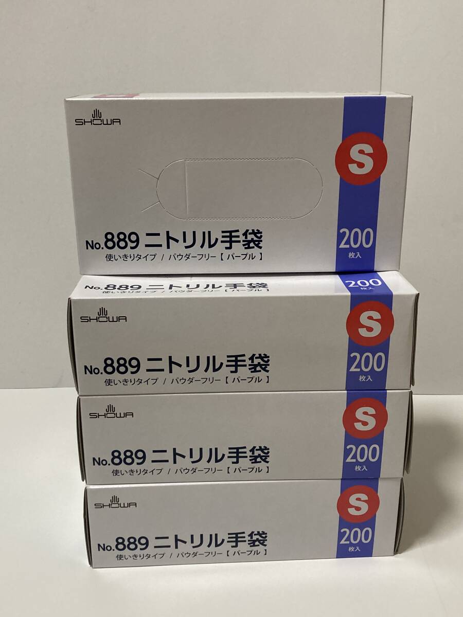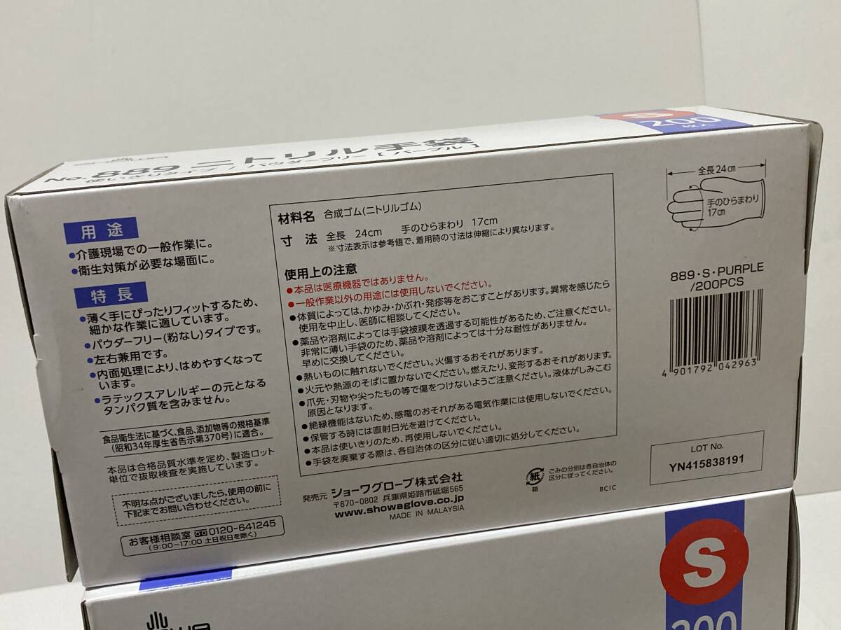 未開封 ショーワグローブ ニトリル手袋 №889 パープル Sサイズ 200枚入 4箱 使いきりタイプ パウダーフリー 一般作業用 極薄 使い捨て