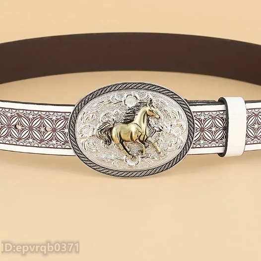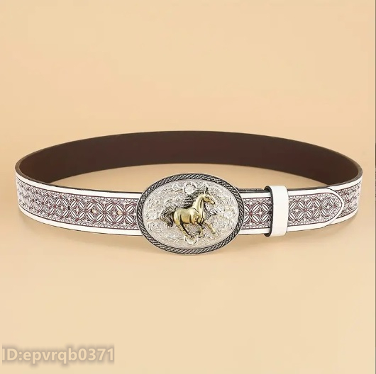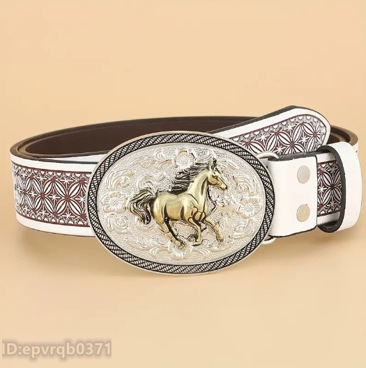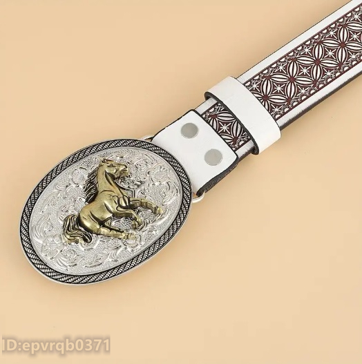 ベルト♪新品 ピンバックル式 バックル馬 メンズ レザーベルト 柄物 革ベルト アメカジ ポンチ付き 115cm 長さ調整可能 /白