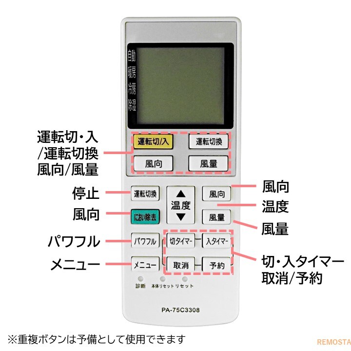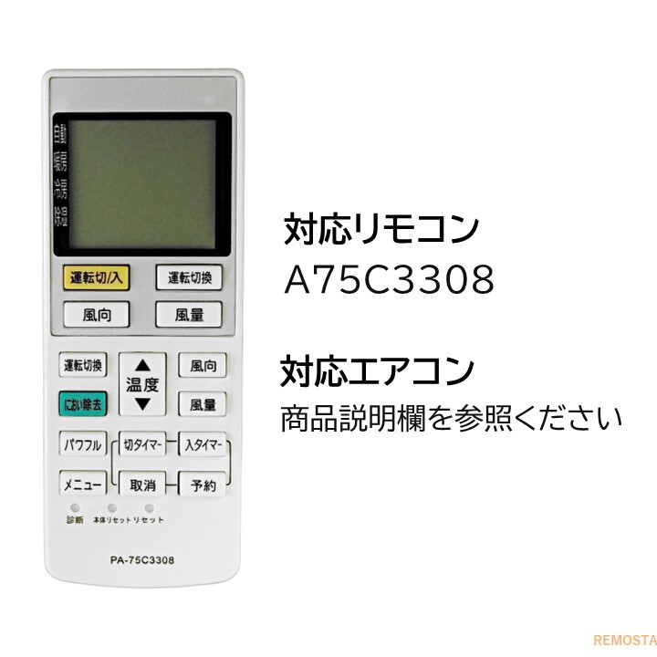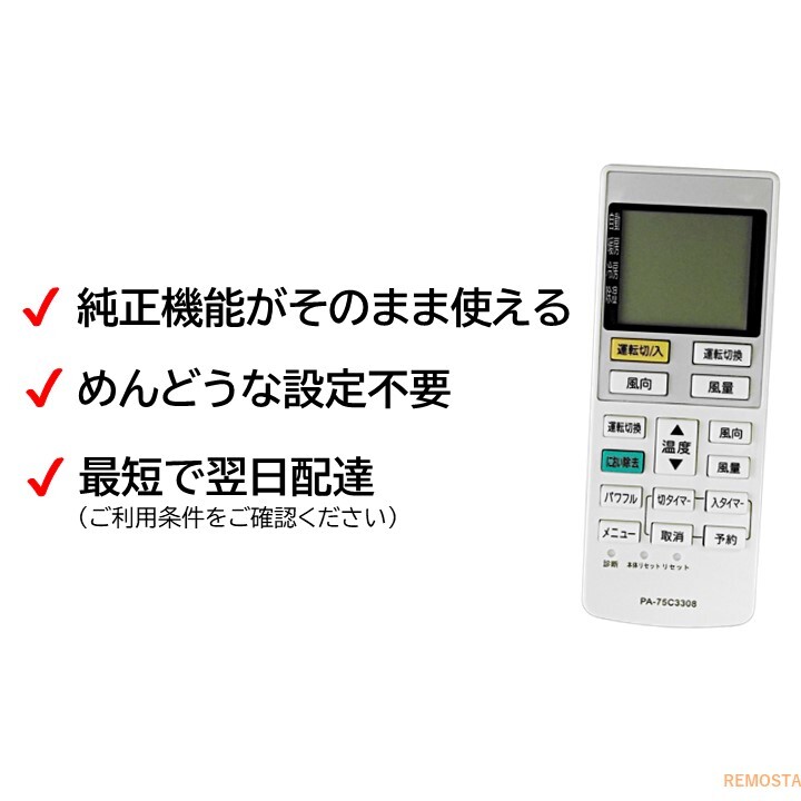 互換品 パナソニック エアコン リモコン A75C3308 CWA75C3309X1 CWA75C3308X CWA75C3287X 代用リモコン REMOSTA 新品
