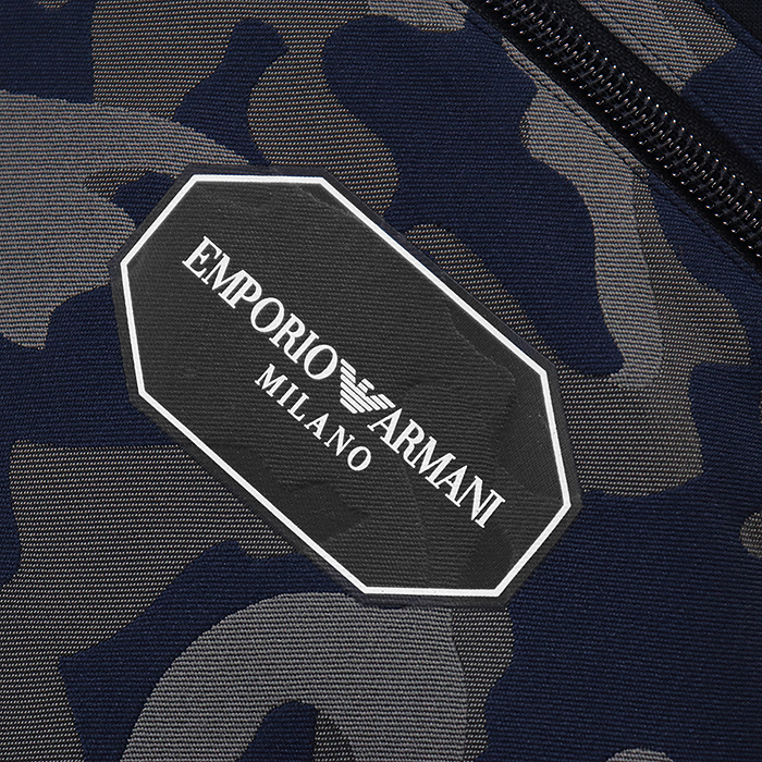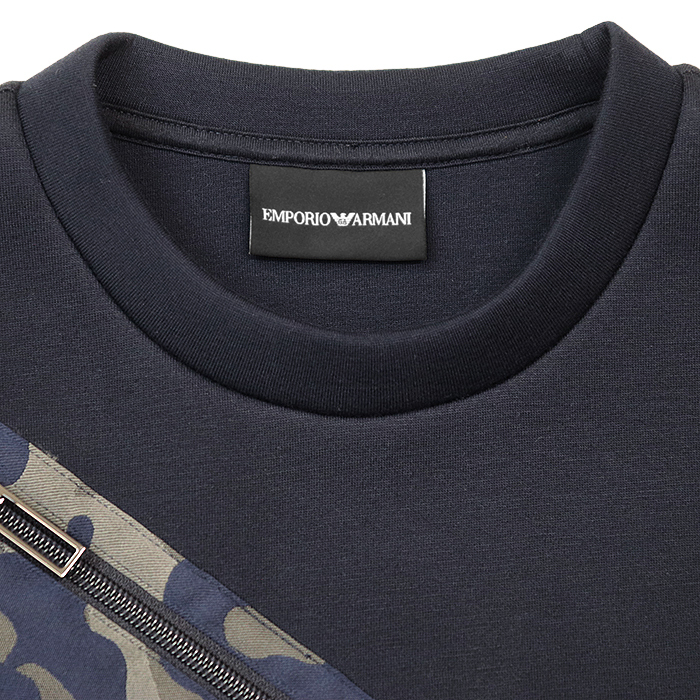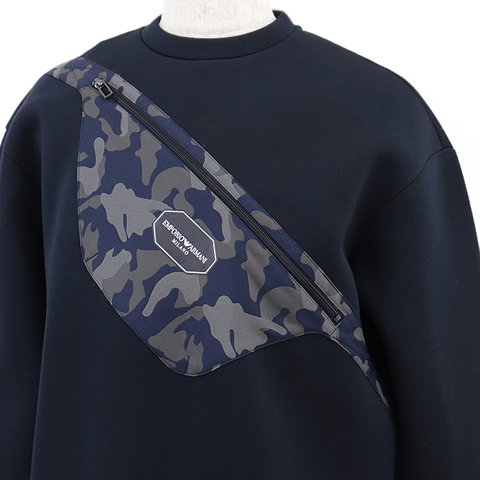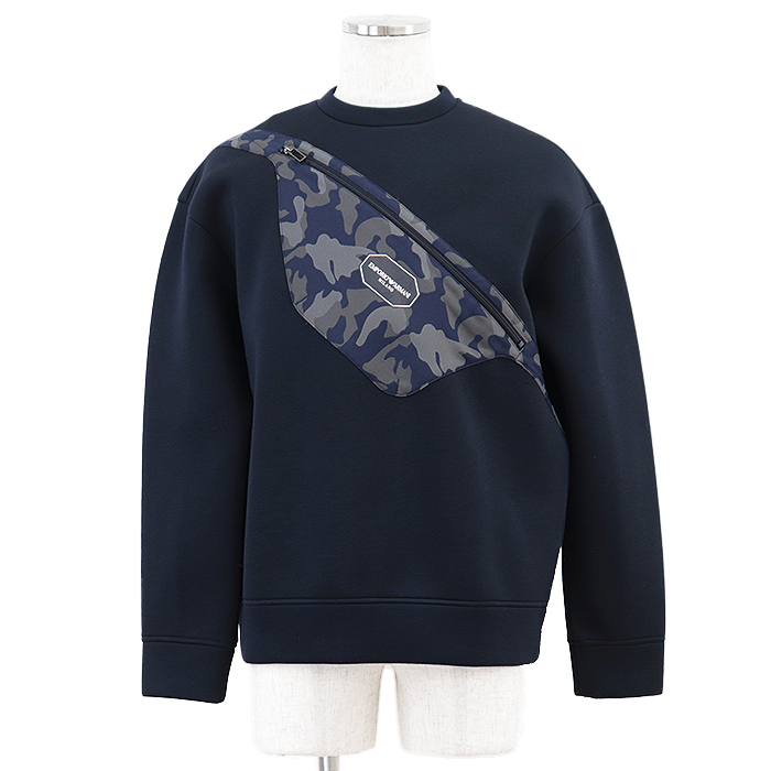 シリーズEmporio Armani エンポリオ・アルマーニ トレーナー カモフラージュ柄 ボディバッグモチーフ ロゴ プリント 長袖 メンズ M 紺