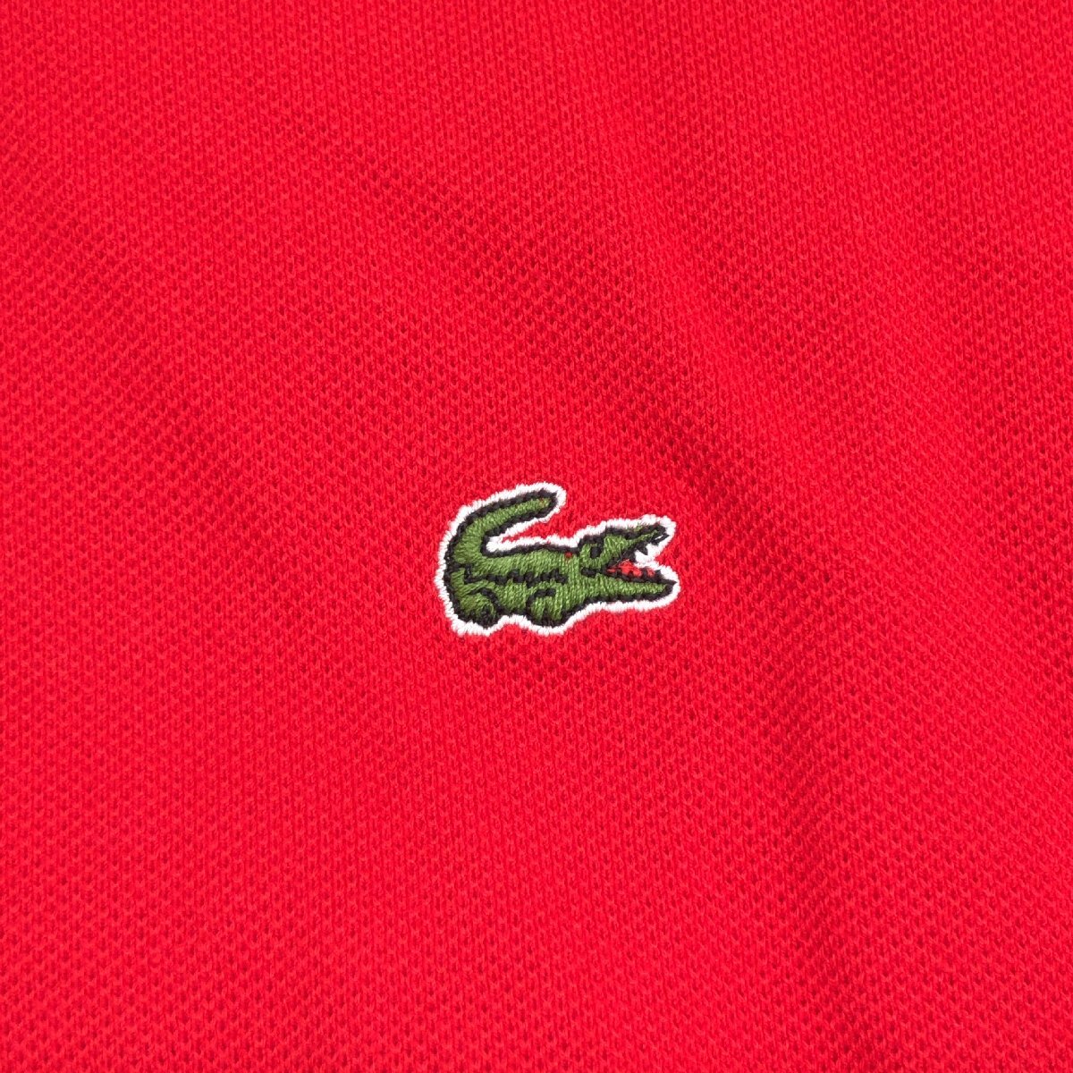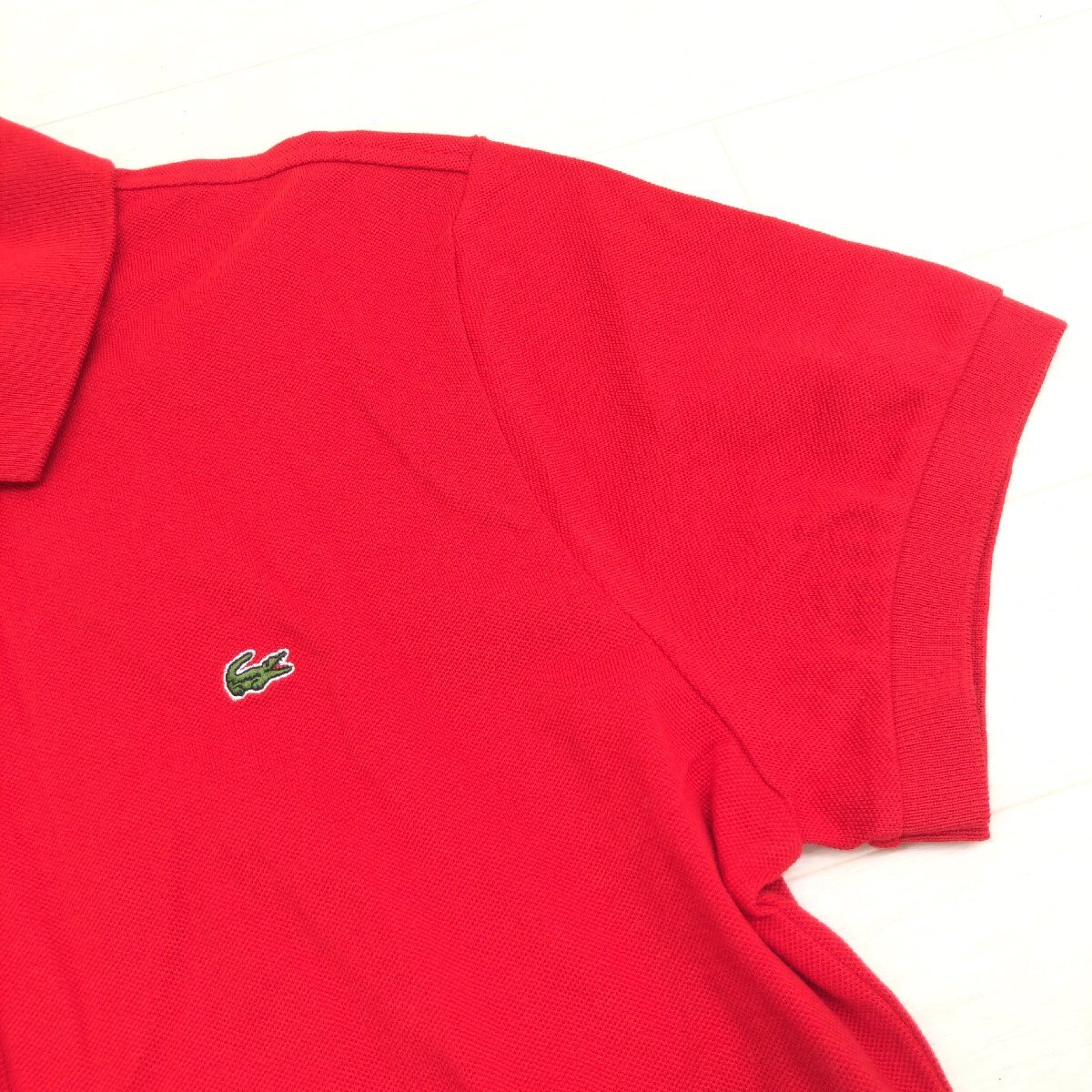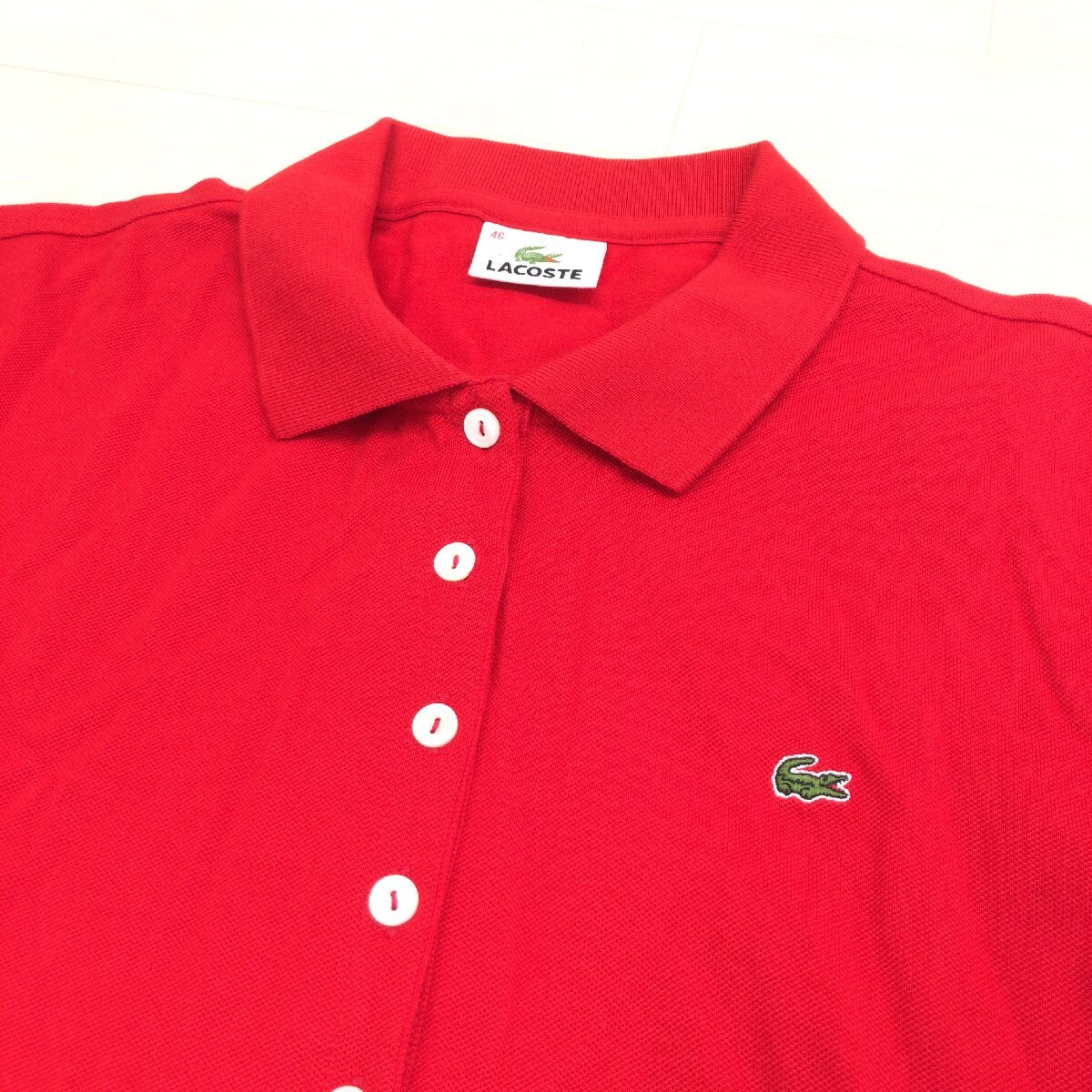 極美品 LACOSTE ラコステ ロゴ刺繍 ストレッチ コットン ポロシャツ 46 赤 レッド 日本製 カットソー 半袖 ゆったり 大きい レディース
