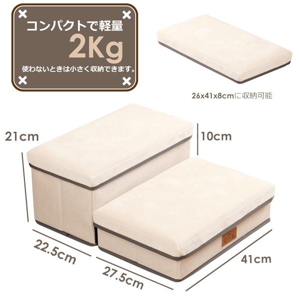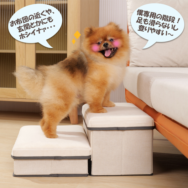 ★新色★ ドッグステップ ペットステップ  犬  階段 踏み台  スロープ  2段  アイボリ- 収納