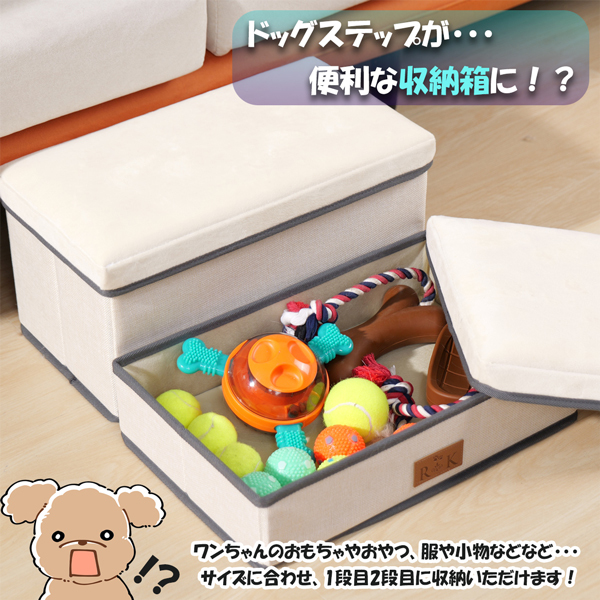 ●2段分(2箱)収納型のドッグステップで、ワンちゃんの服や小物、飼い主様の荷物など、スペースを活用して収納いただけます。