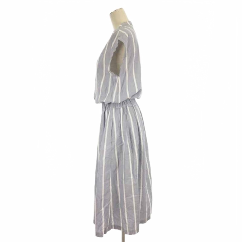 イエナ IENA ワンピース ロング フレンチスリーブ 半袖 ストライプ プルオーバー 紺 白 ネイビー ホワイト 38 レディース