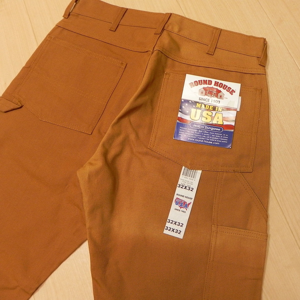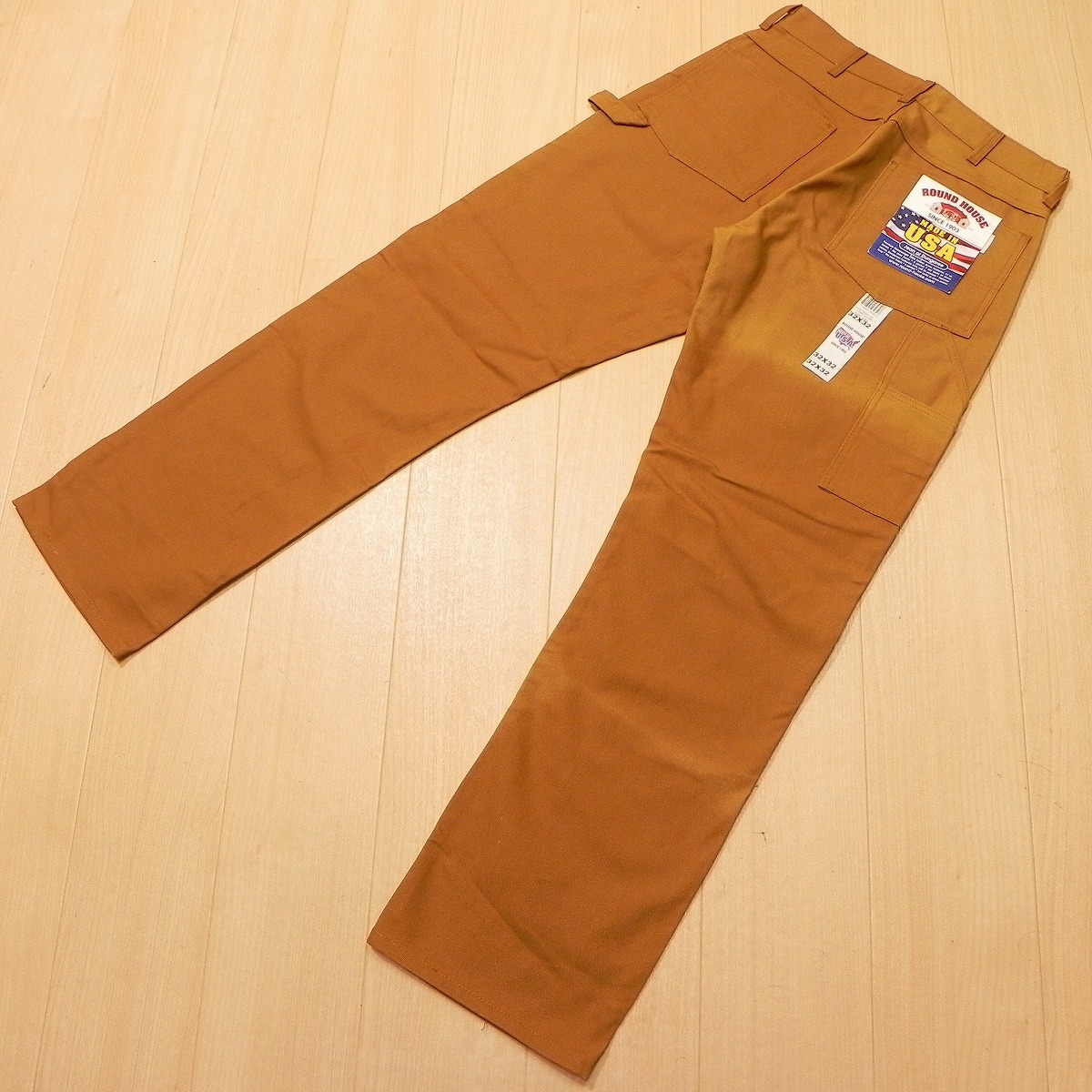 ^69★【未使用品 デッドストック】USA製 ROUND HOUSE ラウンドハウス 101 ダック生地 ワークパンツ ペインターパンツ 32×32 ブラウン系 ★