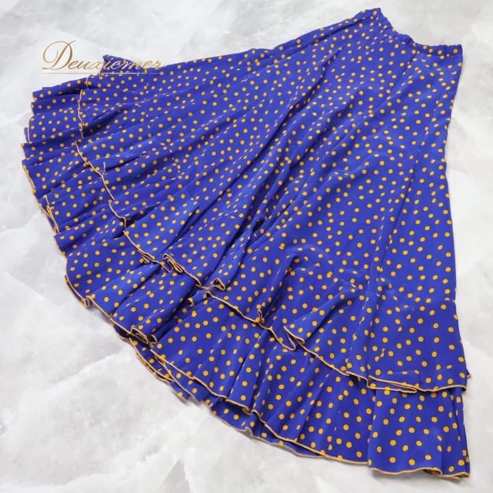 | 【商品名】フラメンコ 衣装 ファルダ スカート 【サイズ】P表記 平置き実測:総丈約89cm、ウエスト約26.5cm~ ※実測の為、多少の誤差はご容赦願います ※9号のトルソーにはファスナーが閉まらないサイズ感です 【仕様】 ・背面ファスナー仕様 ・ウエストのみ若干の伸縮性有り ------------------------------------ 【ポイント】 ▽Luisa ルイサ ▽青×オレンジのポップな色味 ▽軽めの素材でレッスン用などとして ------------------------------------ 【撮影時使用トルソー】 種 類:女性用トルソー9号 (一般的に使用されるサイズです) サイズ:肩幅約37cm、バスト約88cm、ウエスト約66cm、ヒップ約89cm |