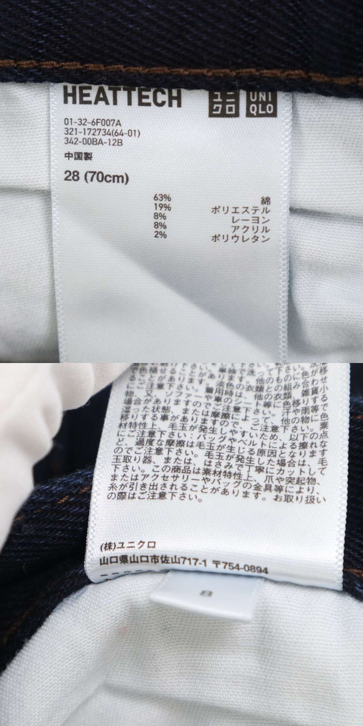 【美品】 UNIQLO ユニクロ 裏起毛★ 防風 ストレッチ ヒートテック スリム フィット デニム パンツ ジーンズ Sz.28 メンズ