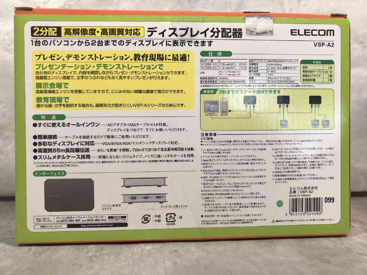 【美品】エレコム ディスプレイ分配器 VGA 2分配 VSP-A2【送料無料】