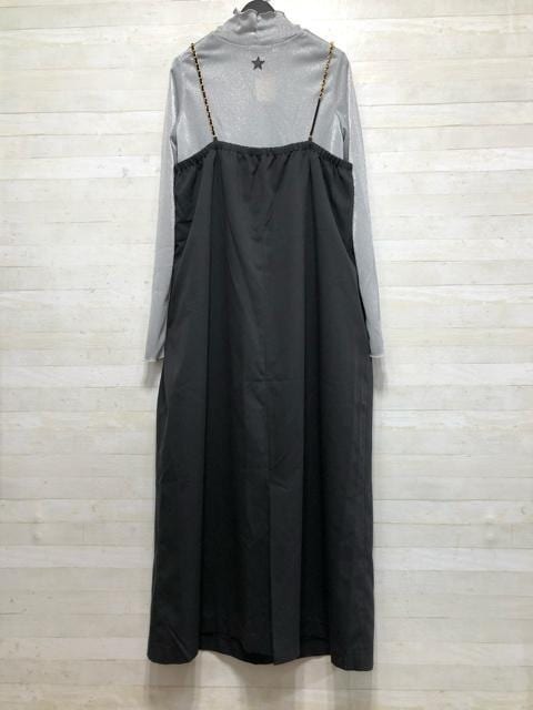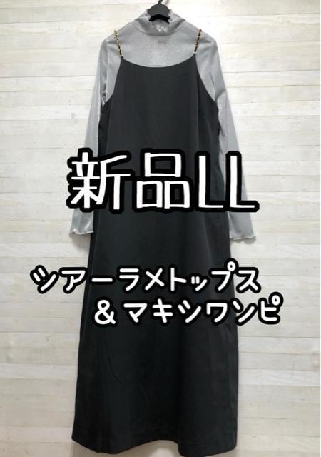 新品☆LL♪ラメトップス&チェーン黒マキシ丈キャミワンピ♪☆Q276
