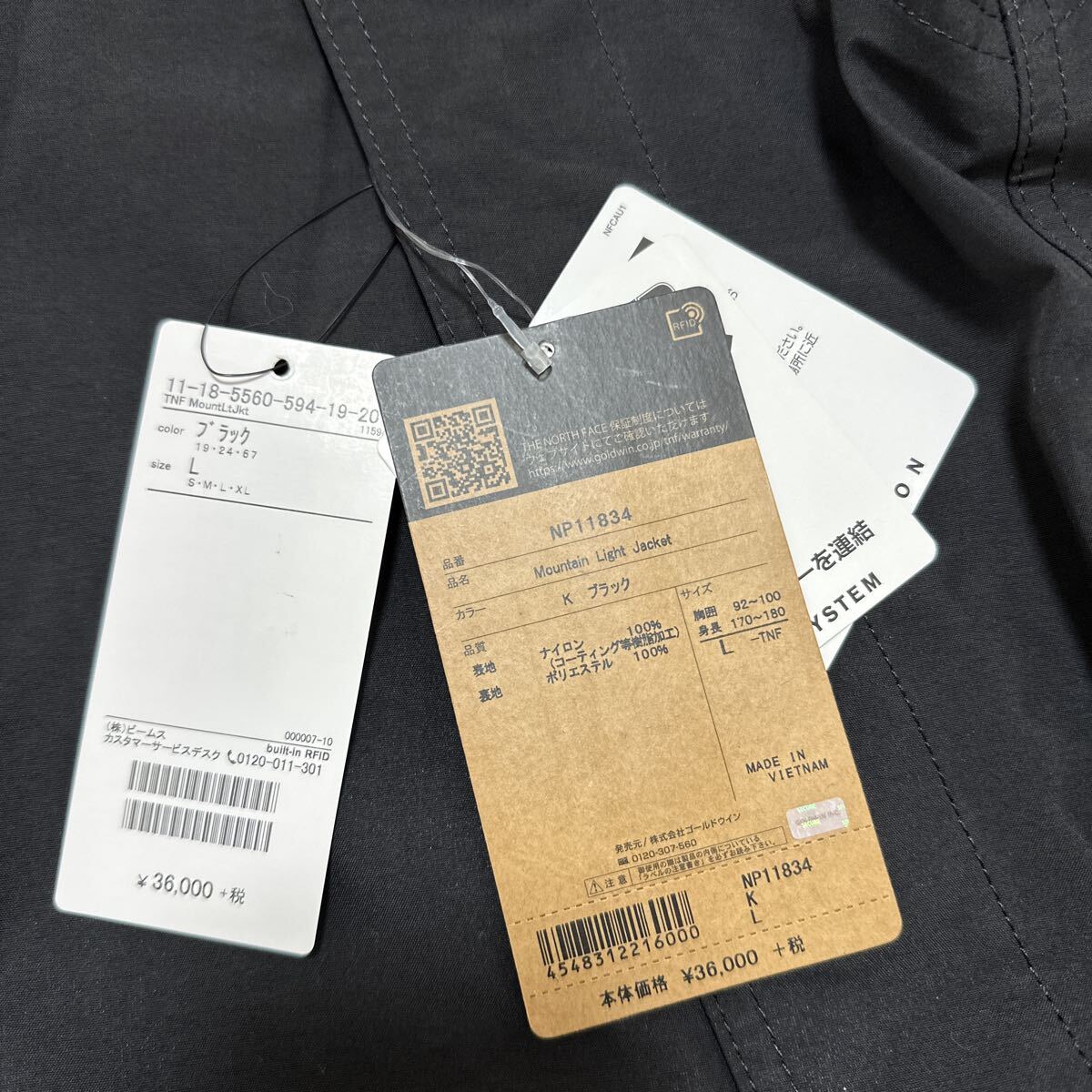 【未使用品】ザノースフェイス THE NORTH FACE Mountain Light Jacket NP11834 マウンテンライトジャケット size L ブラックです