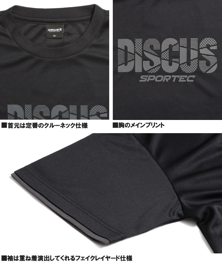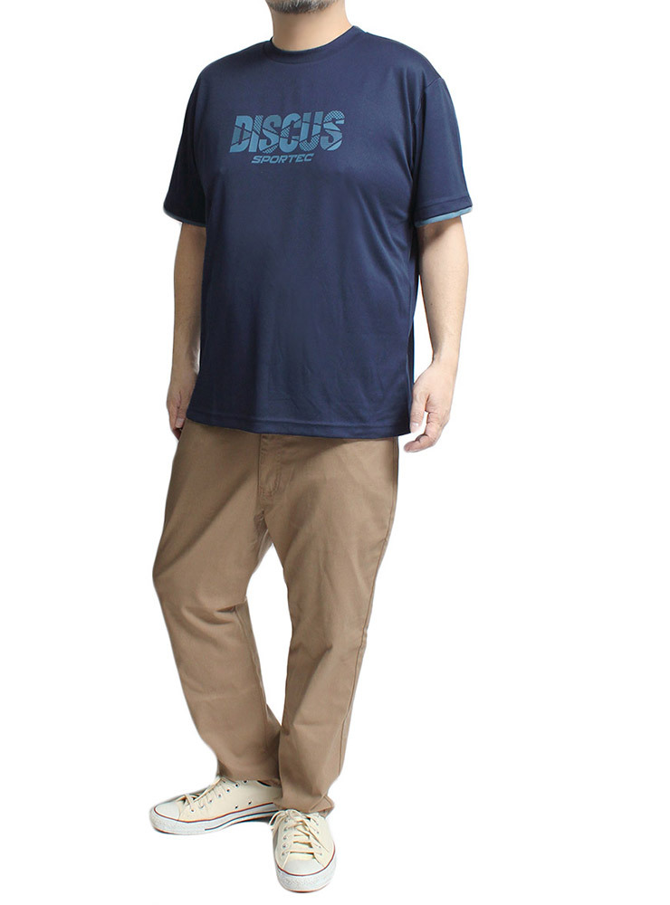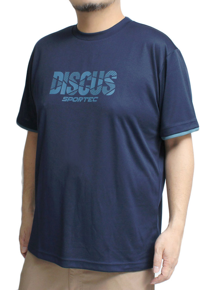 商品名 | 【新品】 5L ネイビー DISCUS ディスカス 半袖 Tシャツ メンズ 大きいサイズ ドライ メッシュ 吸汗速乾 ロゴ プリント カットソー |