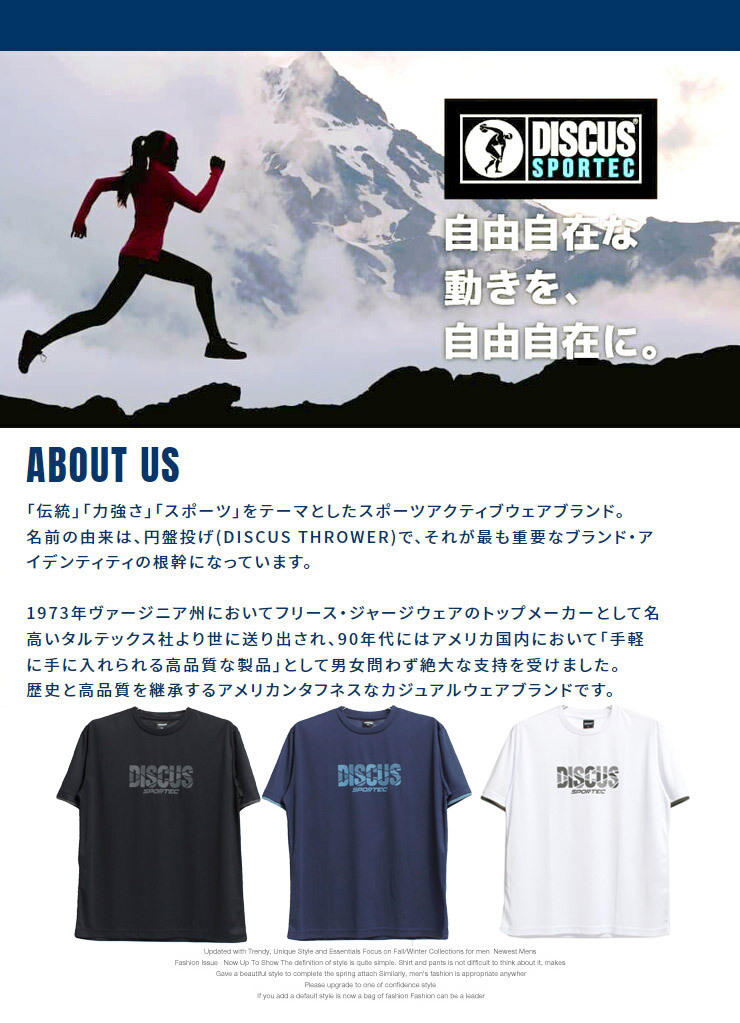 商品説明 | DISCUSより暑い時季におすすめの汗を吸ってもすぐに乾かすメッシュ素材を使用した、吸汗速乾性のあるドライ機能付き半袖Tシャツが入荷しました。 |