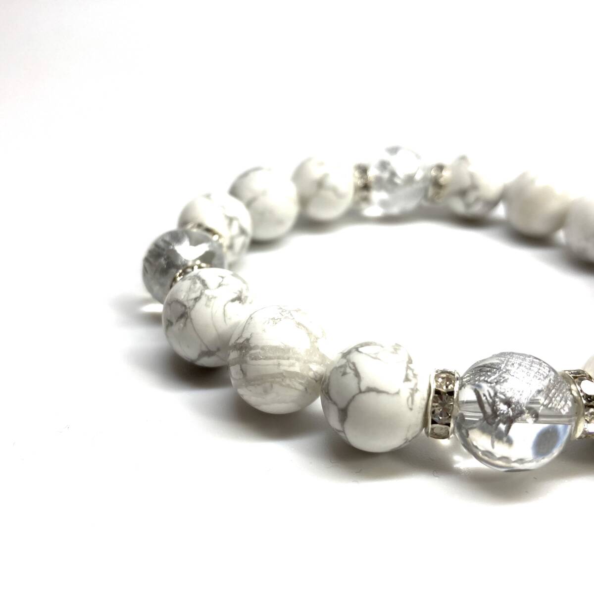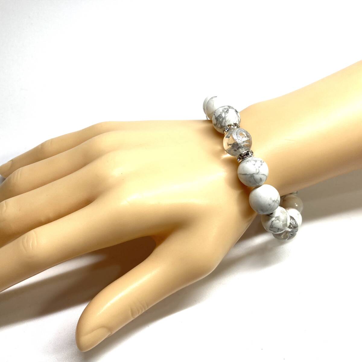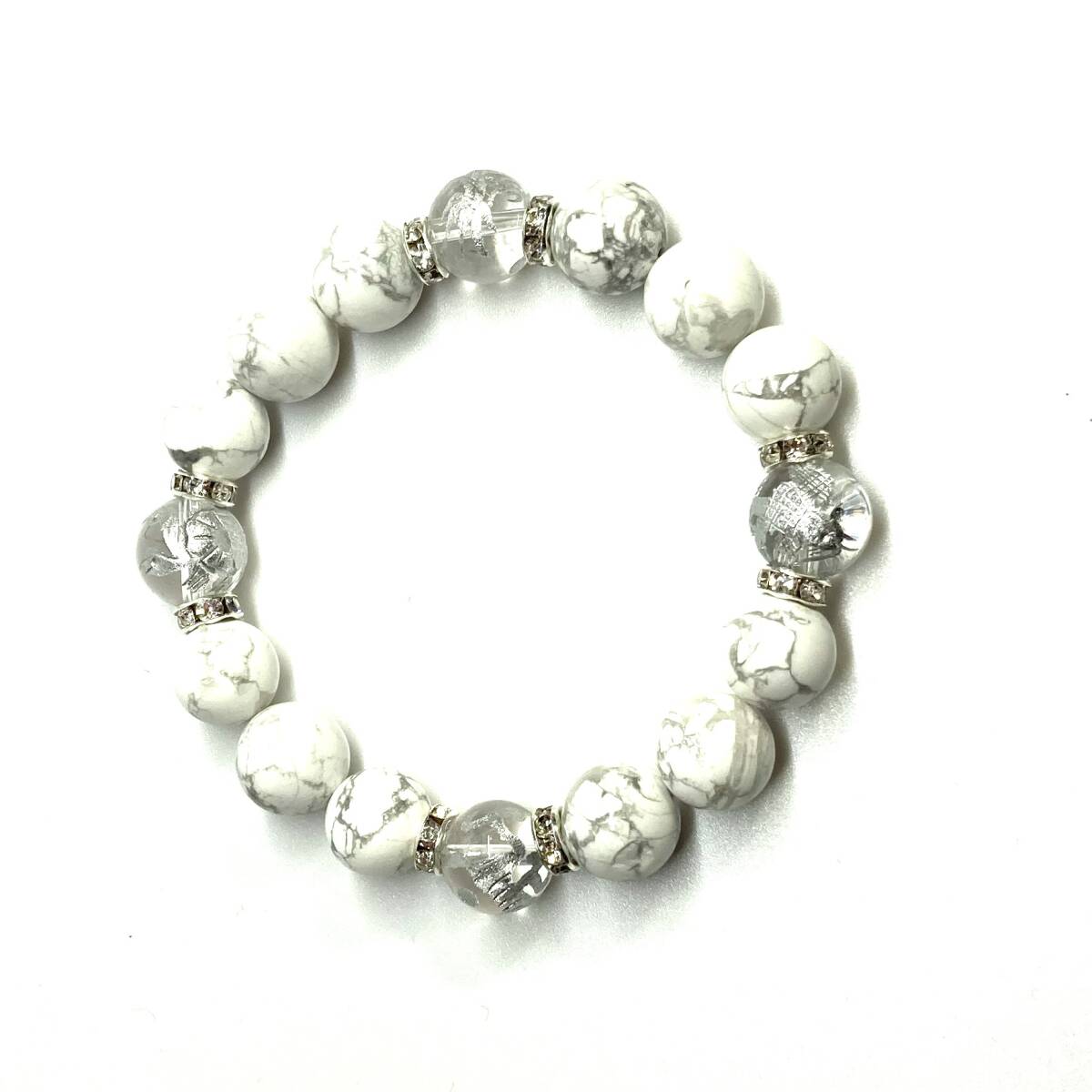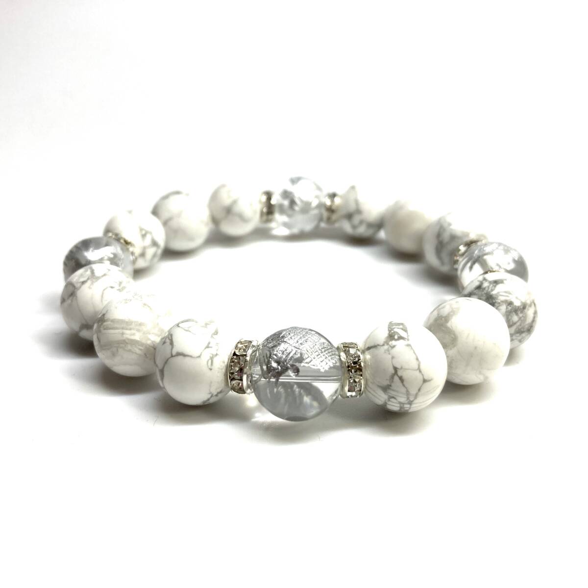 こちらは、四神獣銀彫水晶とハウライトを組み合わせたパワーストーンブレスレットです。四神獣は、中国の伝説で4つの方向(東西南北)を守護する神聖な神。四神獣、厄災から身を守り、多くの運気を呼び込むと言われております。石大きさは程よくインパクトのある12mm玉で内周 約17cmです。 数に限りがございますので気になる方はお早めにどうぞ。